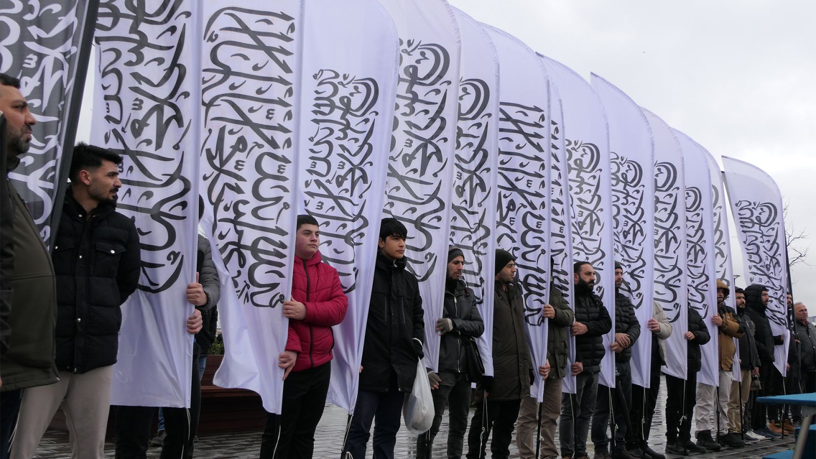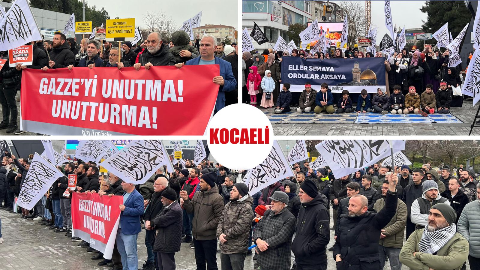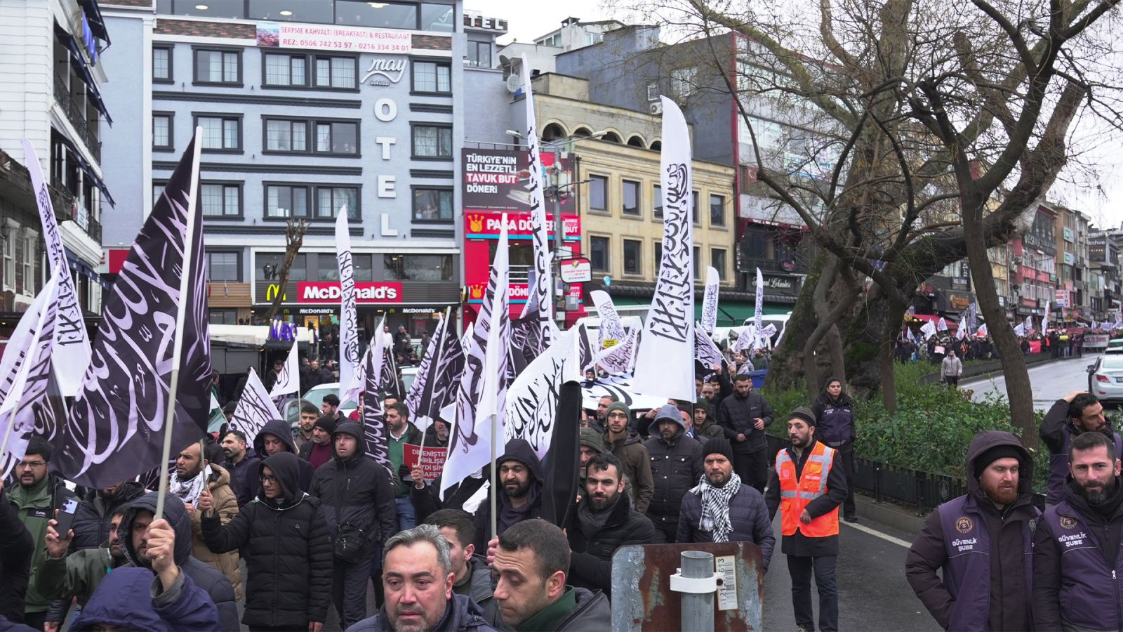 Gazze’ye destek mesajları içeren pankartların taşındığı yürüyüşte yol boyunca tekbirler getirilerek Gazze direnişi selamlandı ve “Ordular Aksa’ya” sloganları atıldı.