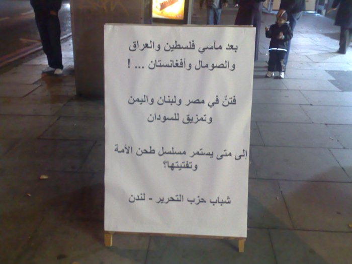 نظم شباب حزب التحرير في قلب العاصمة لندن في شارع إدجوار رود المعروف بشارع العرب نشاطهم الأسبوعي، الذي يناقشون فيه أبناء الأمة القاطنين هناك والزوار منهم كل أسبوع في موضوع يهم الإسلام والمسلمين. وفي هذا الأسبوع كان موضوع النقاش هو فساد العلمانية وصلاح الإسلام. ودار النقاش مع المسلمين حول عدة نقاط نذكر أهمها:
