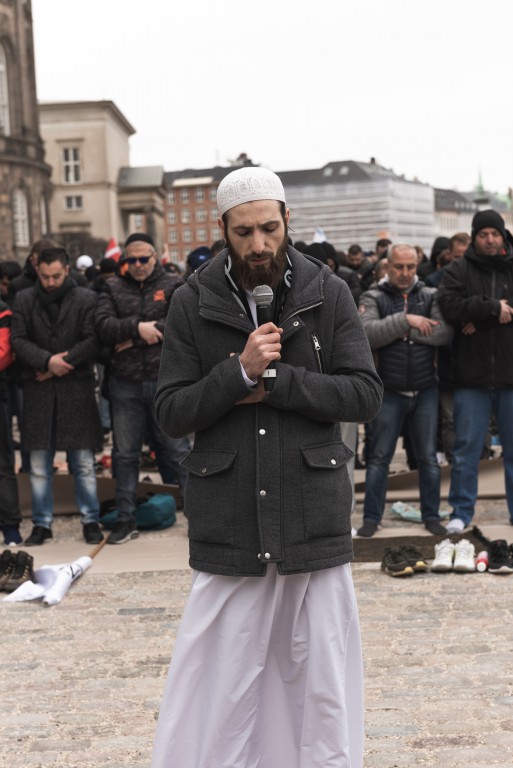 رغم أجواء الخوف التي أشيعت، ورغم تنظيم ثلاث جهات احتجاجا في المكان نفسه ضد حزب التحرير من يهود ويمين متطرف وبعض البرلمانيين إلا أن نحو ألف شخص حضروا الصلاة وكانت الخطبة تتضمن ثلاث رسائل مؤثرة للمسلمين، والسياسيين وللشعب الدنماركي.