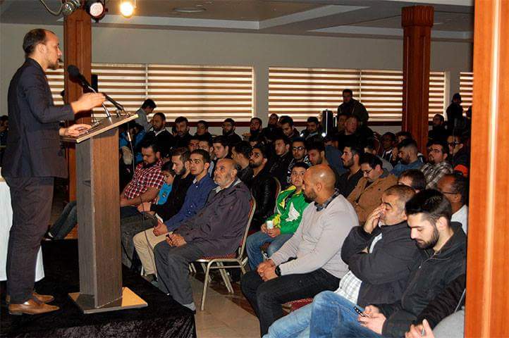 وقد تم افتتاح الندوة بتلاوة عطرة من كتاب الله عز وجل، وبعد ذلك ألقى الأخ أبو زيد كلمة شرح فيها كيف أن الإعلام الغربي يتقصد ربط الإسلام بأعمال العنف، محاولا بذلك الضغط على الجاليات المسلمة من أجل أن تغير مفاهيمها الإسلامية وتستبدل بها أخرى غربية، وبيّن كيف يتغاضى هذا الإعلام عن ذكر الإرهاب الذي تمارسه الدول الغربية إما مباشرة باحتلال البلاد وقهر أهلها أو بتنصيب عملاء لها يسومون الناس سوء العذاب والهوان ويجعلون ثروات البلاد نهبا للكافر المستعمر.