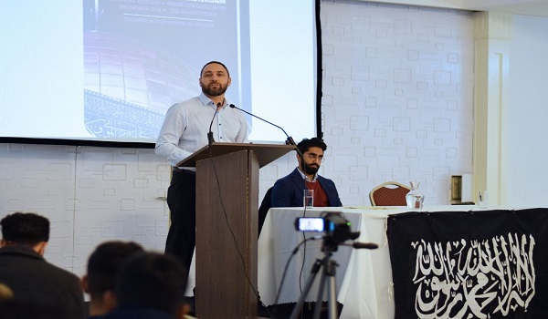وفي الكلمة الأولى من الندوة تكلم الأخ أبو هشام عن بيت المقدس منذ أن زارها النبي عليه الصلاة والسلام ليلة أسري به، ويوم فتحها عمر رضي الله عنه وتسلم مفاتيحها من حاكمها صفرونيوس، وكتبت العهدة العمرية التي تنص على أن لا يسكنها أحدٌ من يهود، ثم تكلم عن بيت المقدس زمن الخلافة الأموية وكيف اهتم خلفاء بني أمية بتعميرها، والخلافة العباسية التي خاضت حروباً طاحنةً من أجل تحريرها من الصليبيين، وفي زمن العثمانيين وخاصة في زمن السلطان عبد الحميد الذي رفض كل عروض يهود من أجل السماح لهم بالهجرة إلى فلسطين، ثم تكلم أبو هشام عن خيانات حكام العرب في تسليم فلسطين إلى يهود سنة 1948 وسنة 1967 وعن المؤامرات التي كانت وما زالت تحوكها الدول الغربية وعلى رأسها أمريكا وبريطانيا بخصوص بيت المقدس خاصة وفلسطين عامة، وخلص إلى أن قضية فلسطين هي قضيةٌ إسلاميةٌ وليست عربية ولا فلسطينية، وإن بيت المقدس سيكون عاصمة دولة الخلافة القادمة قريباً بإذن الله، شاء من شاء وأبى من أبى، وإن واجب تحريرها يقع على عاتق جيوش المسلمين المدججة بالسلاح.