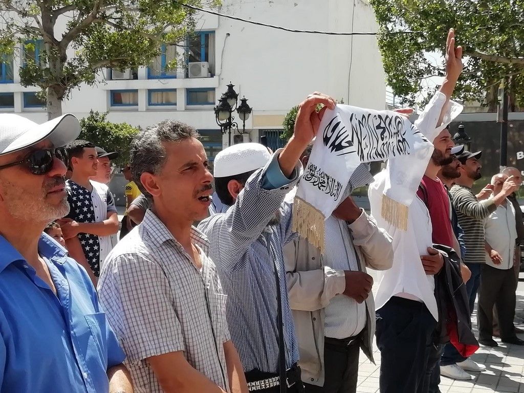 ومن بين الشعارات المرفوعة في هذه الوقفة: "لا مفر لا مفر والخلافة هي الحل"، "لا إله إلا الله والخلافة وعد الله"، "يا للعار يا للعار، بعد الثورة استعمار"، "يا للعار يا للعار، باعوا الثورة بالدولار"، "لا تنازل لا استسلام تونس حاميها الإسلام"، "قائدنا للأبد سيدنا محمد"...