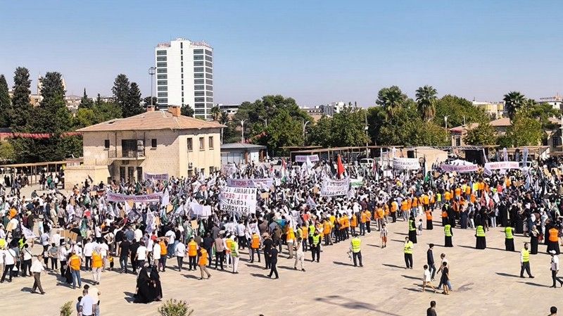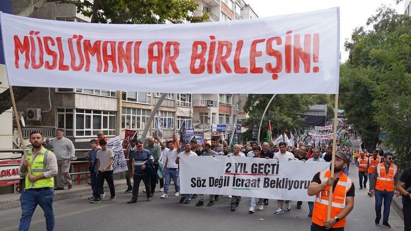في المسيرة التي نظمها حزب التحرير / ولاية تركيا وانضمت تحت لوائها العديد من المنظمات المدنية الإسلامية بالاشتراك مع "دار التغيير الجذري" تحت شعار "لنتحد من أجل غزة" دفاعاً عن المسلمين العزل الذين تُركوا وحيدين تحت نير الإبادة الجماعية والحصار والاحتلال المستمر منذ 24 شهراً، وجه المتظاهرون نداءً إلى النظام التركي تحت شعار "سنتان مرتا، لا ننتظر أقوالاً بل أفعالاً!".