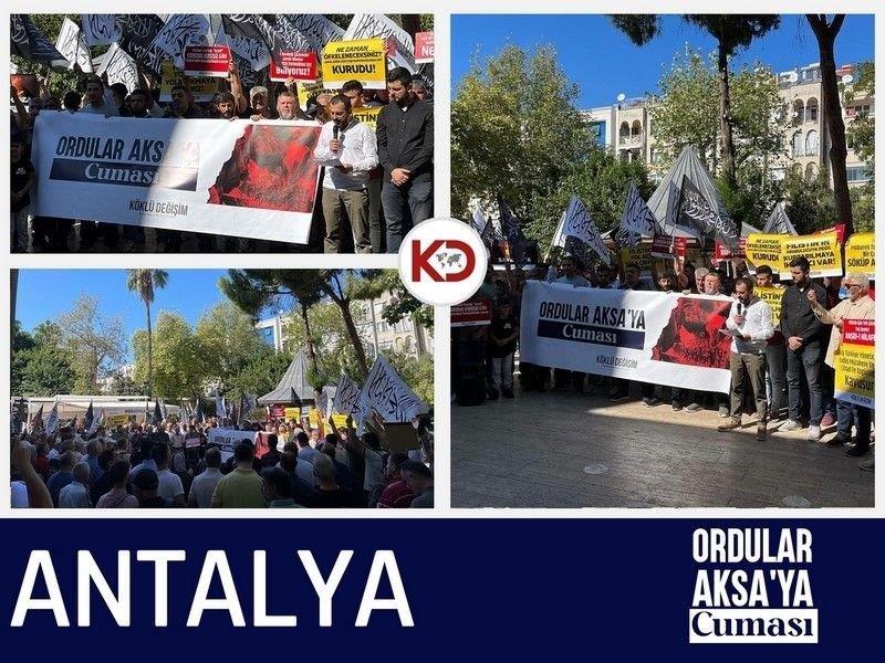 في ظل البطولات التي سطرها المجاهدون الأبطال في الأرض المباركة (فلسطين) تحت شعار (طوفان الأقصى) ضد كيان يهود الغاصب الذي يواصل ويتمادى في اعتدائه المستمر على المسجد الأقصى المبارك وحصاره وقصفه المستمر منذ 17 سنة على قطاع غزة نظم حزب التحرير / ولاية تركيا فعاليات واسعة على مستوى تركيا في 53 نقطة عقب صلاة الجمعة تحت عنوان: