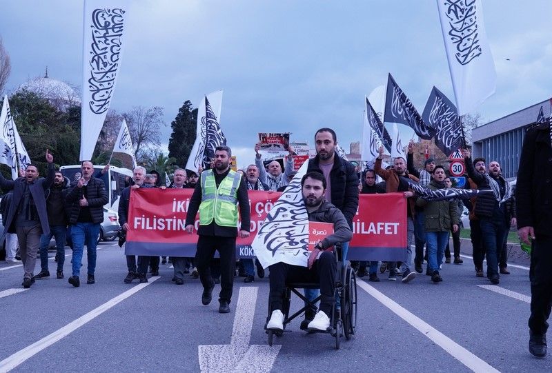 أمام المجازر الوحشية التي يرتكبها كيان يهود المجرم بحق المسلمين العزل في قطاع غزة والتي أدت إلى استشهاد وإصابة أكثر من 100 ألف مسلم ومسلمة حتى الآن، نظم حزب التحرير / ولاية تركيا أمام القنصلية العامة المصرية في إسطنبول فعالية قراءة بيان صحفي ومظاهرة احتجاجية تحت عنوان: