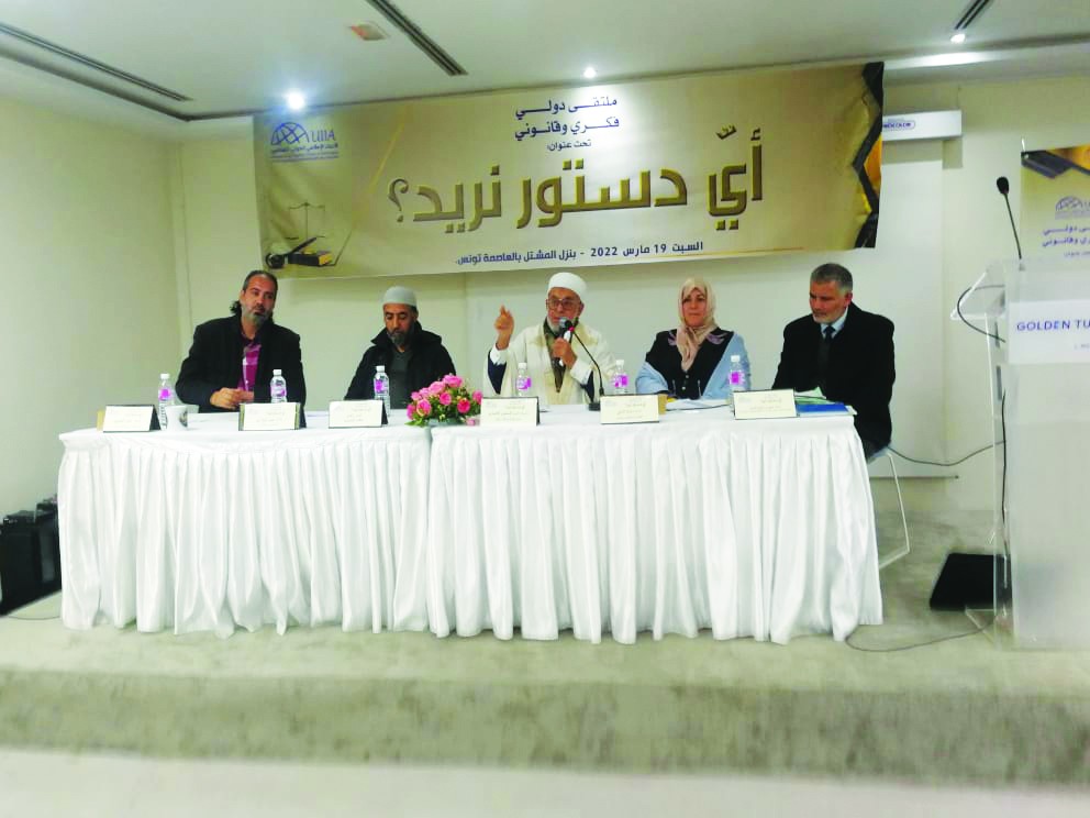 في ظل الجدل الحاصل بين مختلف الأطراف السياسية في البلاد، حول طبيعة النظام السياسي في تونس والدستور المُنَظم له، خاصة عقب مسار 25 تموز/يوليو، نظّم الاتحاد الإسلامي الدولي للمحامين مؤتمرا عالميا بتونس تحت عنوان: أي دستور نريد؟