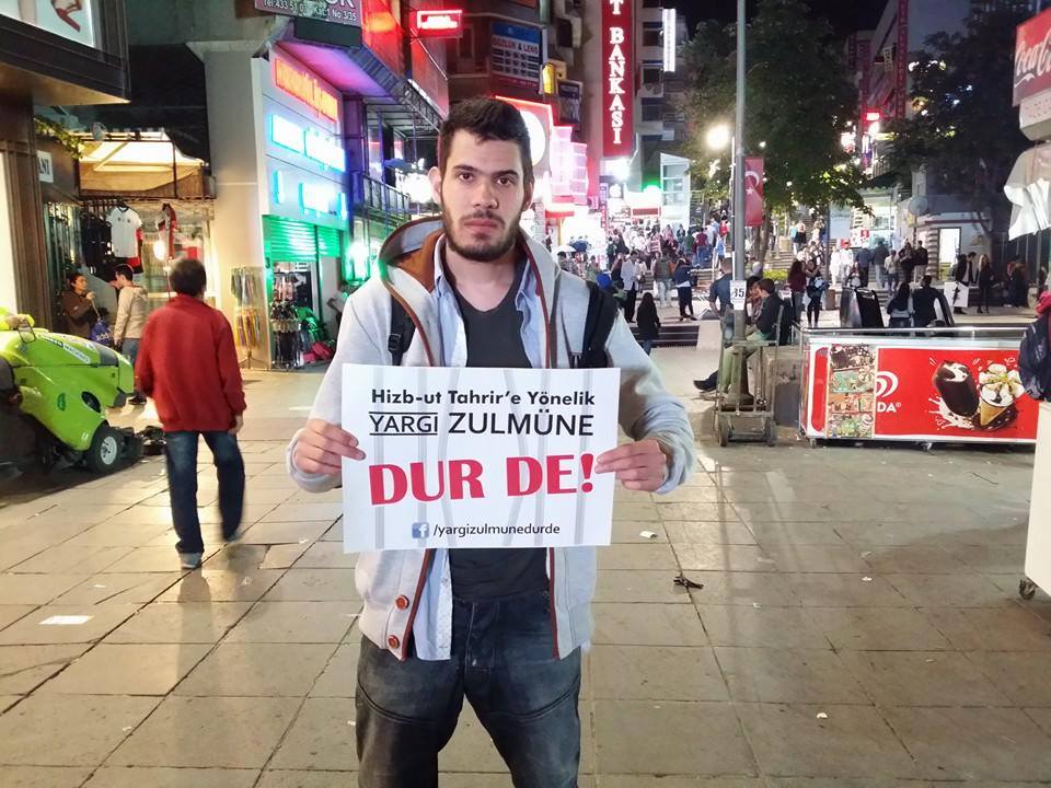 على غرار ما حصل يوم الأحد المنصرم 2014/11/09م من اعتقال 6 من شباب حزب التحرير لقيامهم بوضع طاولة لجمع التواقيع ضمن حملة "قل قف! لظلم القضاء التركي" التي أطلقها الحزب في ولاية تركيا منذ شهر أيلول/سبتمبر المنصرم لرفع الظلم عن 500 عضو من أعضاء حزب التحرير ممن تعرضوا لظلم القضاء التركي الموجه من قبل النظام الجائر الذي ما انفك ينزل بشباب الحزب أحكام مسيسة ظالمة بلغت (1828 سنة) في محاولة منه لثني حملة الدعوة المخلصين عن المضي قدما نحو إقامة دولة الخلافة الراشدة على منهاج النبوة، تبعها تنظيم وقفة أمام مخفر مهمت علي أوزبك في حي كتشي أوران في أنقرة أفضت إلى إخلاء سبيل الشباب الستة في ساعة متأخرة من الليل، على غرار ذلك أقدمت قوى أمن الجمهورية التركية العلمانية (اللادينية) اليوم الأحد 2014/11/16م على اعتقال شابين من حزب التحرير هم (أبجد كوركماز) و(عبد القادر يلدرم) لوضعهم طاولة في حي يني محلة بأنقرة لجمع التواقيع ضمن الحملة ذاتها، تبعهما اعتقال الشاب (حذيفة تهتلي) لذهابه لمديرية الأمن والسؤال عنهما، ما استدعى أهالي وأصدقاء وأنصار وشباب الحزب إلى تنظيم وقفة أمام مديرية أمن أنقرة، ونتيجة للضغوط التي مورست على المدعي العام من خلال تحريك الرأي العام ومؤسسات المجتمع المدني، تم بحمد الله وفضله إخلاء سبيل الإخوة الثلاثة.