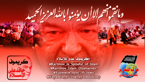 إن ما وصل إليه عدو الإسلام كريموف من إجرام يدفع المخلصين من أبناء الأمة إلى الصدع بالحق كواجب شرعي وأخلاقي، لهذا فإن المكتب الإعلامي المركزي لحزب التحرير يطلق حملة عالمية لفضح هؤلاء المجرمين وكشف زيف دعواهم عن حريات وحقوق إنسان، تحت شعار: #كريموف_حاقد_على_الإسلام