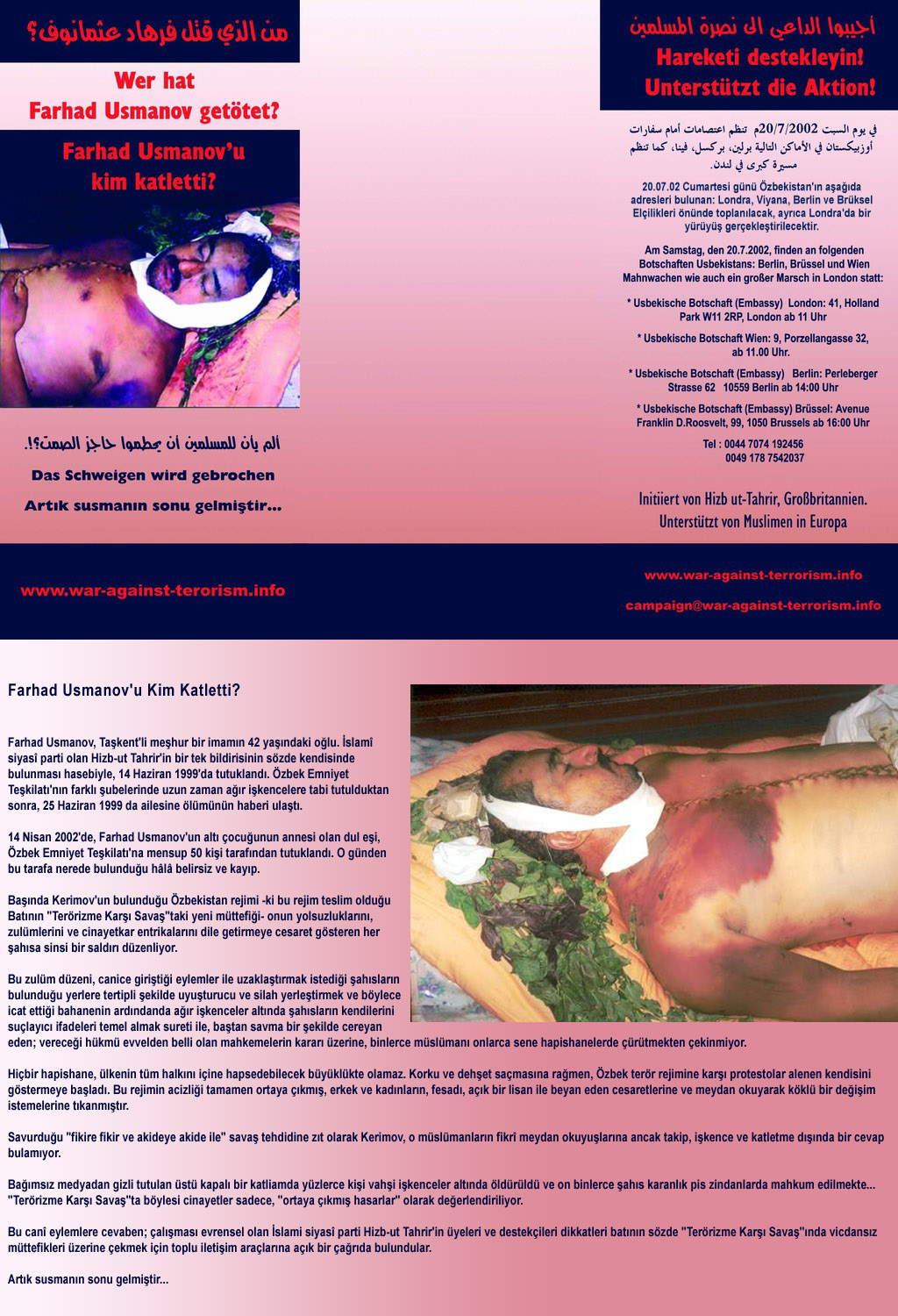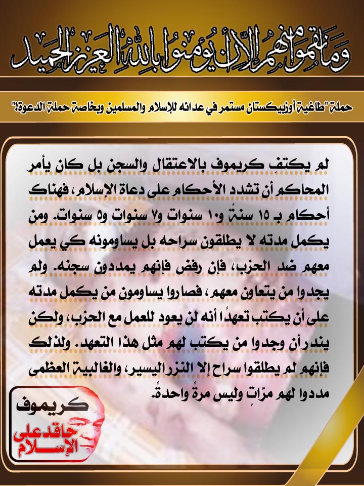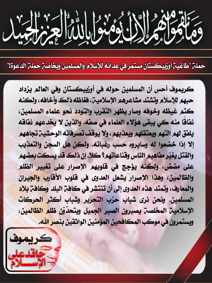ضمن حملة "طاغية أوزبيكستان مستمر في عدائه للإسلام والمسلمين وبخاصة حملة الدعوة"