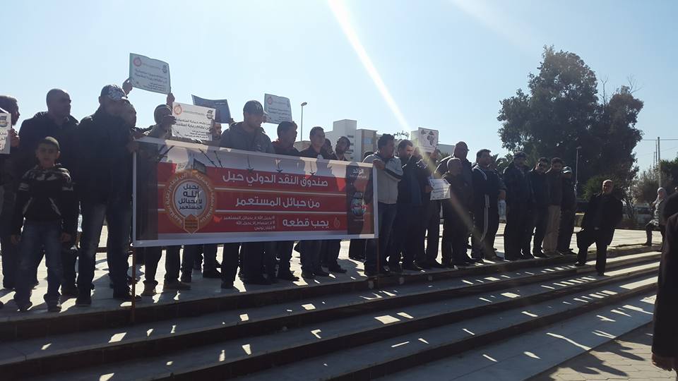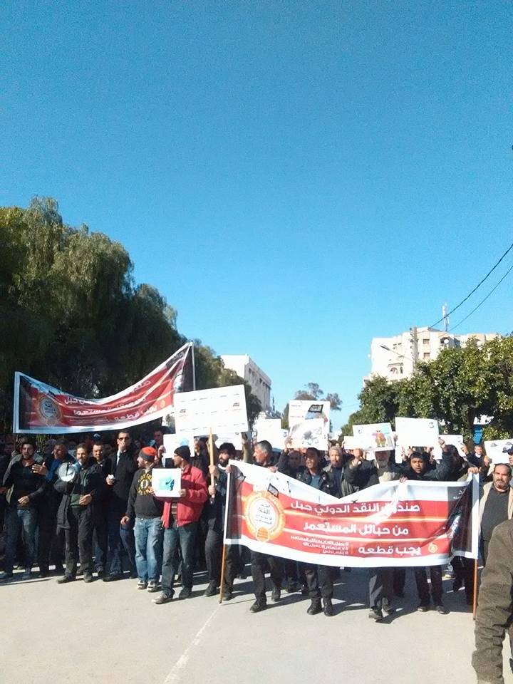 رفضا لزيارة وفد صندوق النقد الدولي لتونس ورفضا لسياسة السلطة في الاقتراض ورهن البلاد.