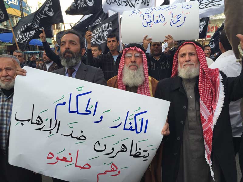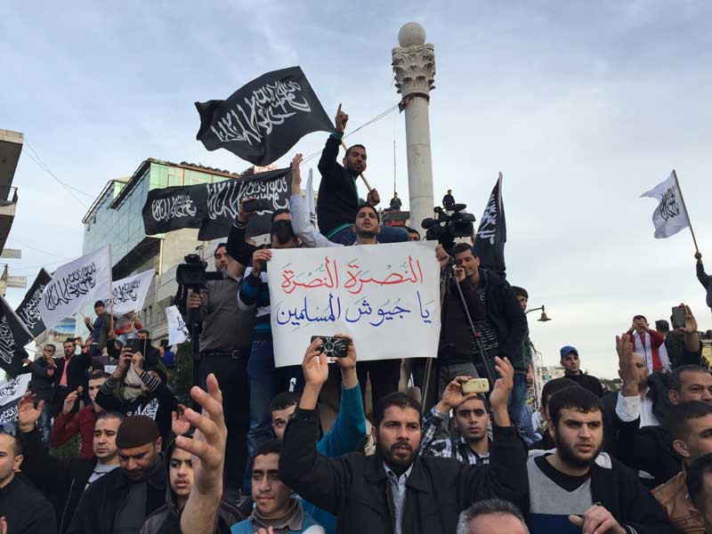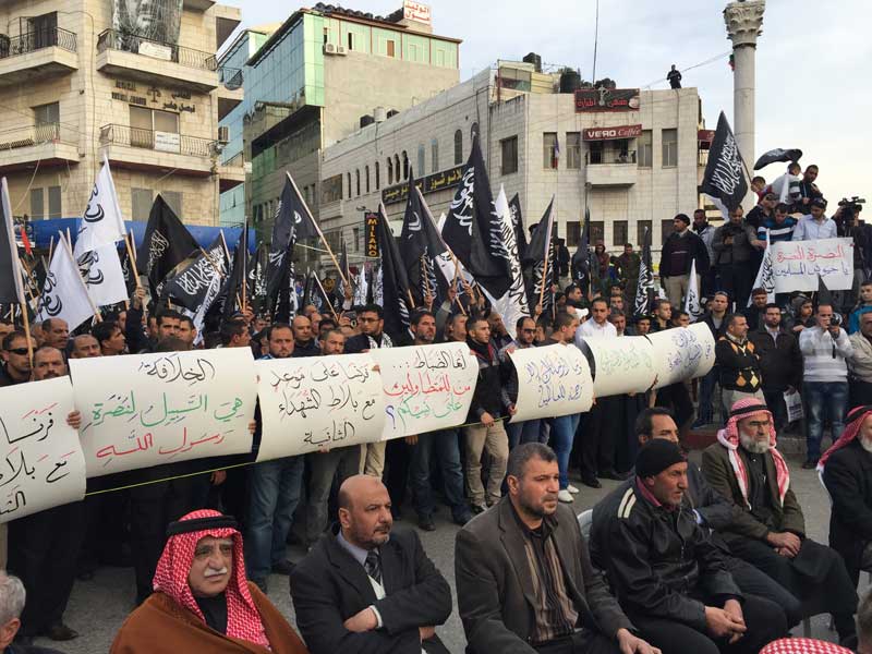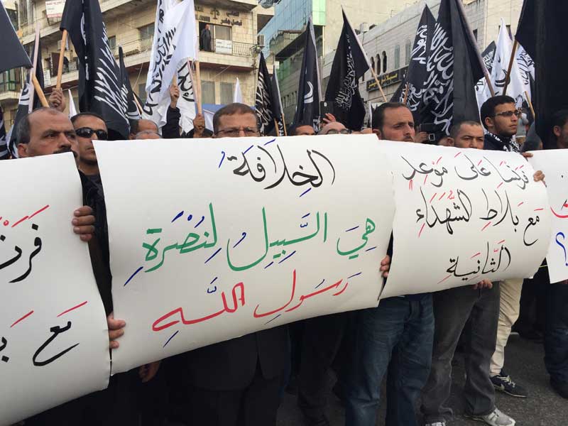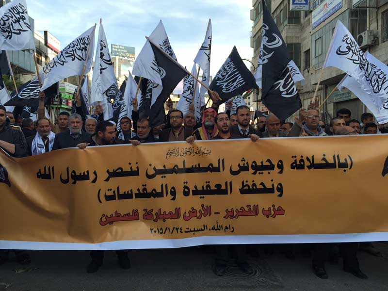 شارك عشرات الآلاف في المسيرات الحاشدة التي دعا لها حزب التحرير- فلسطين هذا اليوم السبت 04 ربيع الثاني 1436هـ الموافق 24 كانون الثاني/يناير 2015م في كل من رام الله والخليل بعد صلاة عصر هذا اليوم السبت، وذلك نصرة للرسول محمد عليه الصلاة والسلام، وتحت شعار"بالخلافة وجيوش المسلمين ننصر رسول الله ونحفظ العقيدة والمقدسات"، ورفع المشاركون رايات رسول الله السوداء المكتوب عليها لفظ الشهادتين، وكذلك لواء الرسول الأبيض، وحملوا يافطات وهتفوا هتافات تندد بالإساءة للرسول عليه السلام وتطالب بمعاقبة المسيئين من خلال جيوش المسلمين.