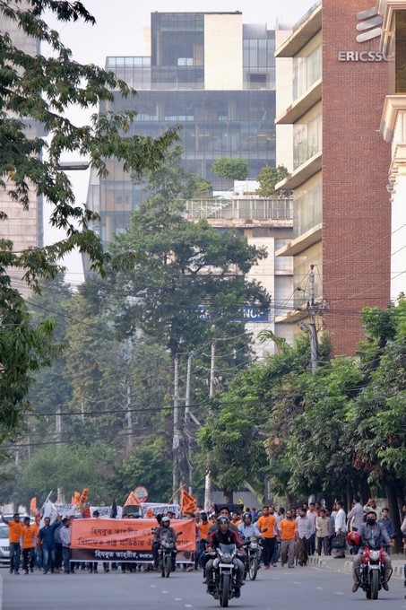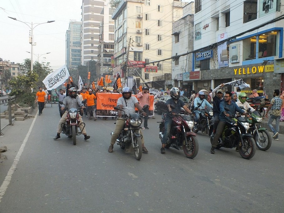 تحت عنوان "لن تحقق الانتخابات الوطنية أي تغيير على النظام الجبري وعلى حال الناس، والخلافة القائمة قريبا بإذن الله هي الحل الوحيد"، نظّم حزب التحرير أنشطة مختلفة ومنها المسيرات التي تمت اليوم الاثنين، 26 تشرين الثاني/نوفمبر بعد صلاة العصر، حيث طاف المشاركون بالعديد من المواقع المهمة في دكا، وكان عنوان المسيرات "توحدوا تحت قيادة حزب التحرير لإقامة الخلافة"، وكان المشاركون يرتدون الزي البرتقالي رافعين أعلام الشهادتين، ومرددين للعديد من الشعارات المختلفة، وبالإضافة إلى ذلك كانت هناك دراجات نارية تسير معهم، وقد لفتت هتافات المشاركين انتباه المارة المحيطين بها، وقد تم توزيع المنشورات، في مشهد لفت نظر الجميع.