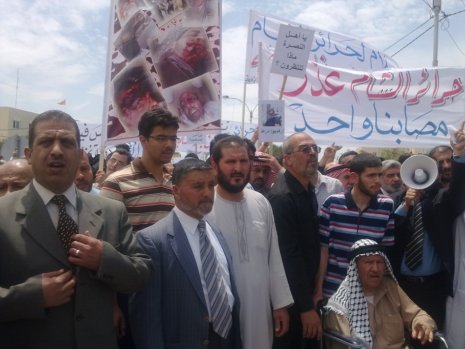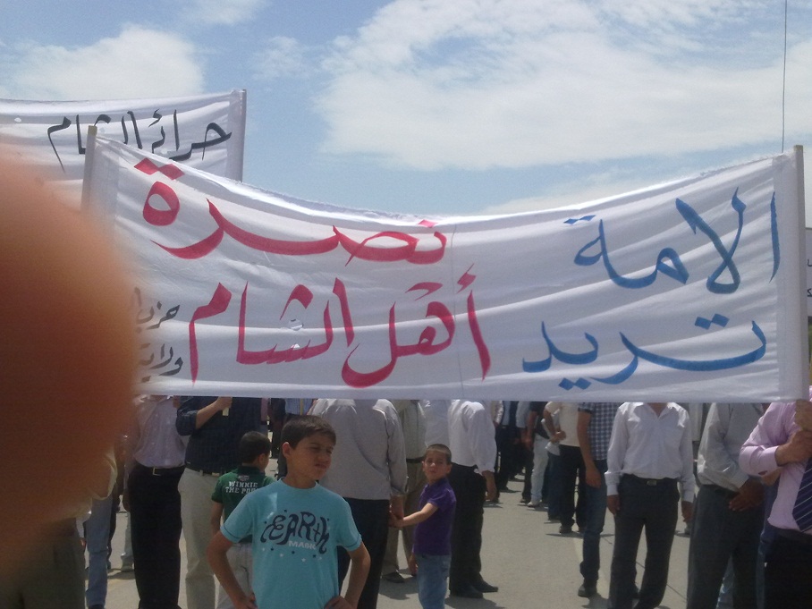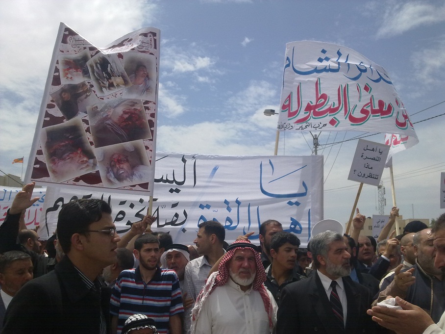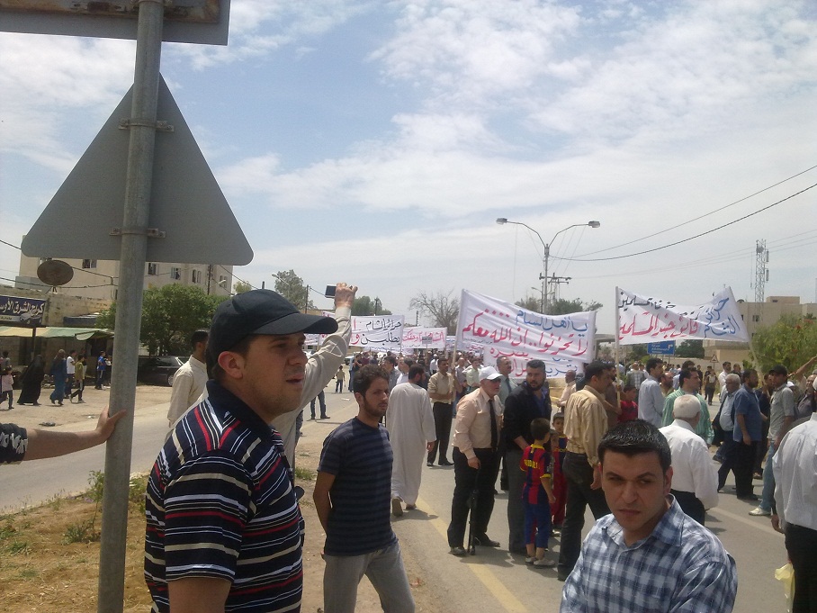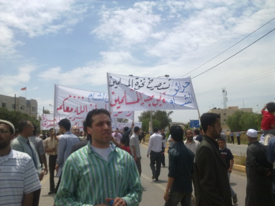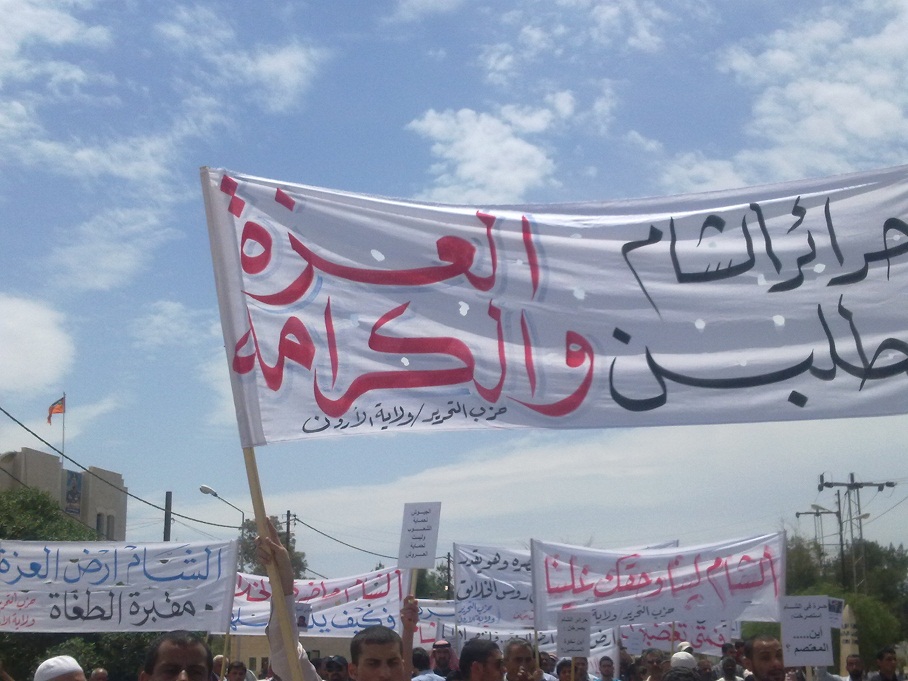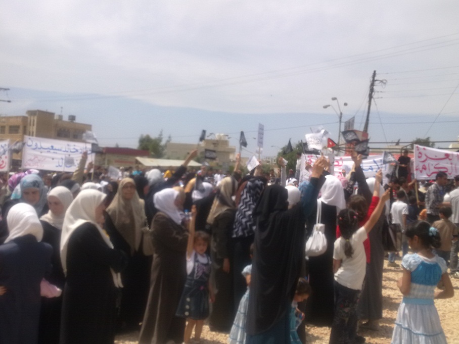 تمت بحمد الله وفضله اليوم فعاليات مسيرة النصرة لحرائر الشام، والتي انطلقت من مسجد التقوى في مدينة الرمثا باتجاه الحدود السورية ضمن حملة حزب التحرير لنصرة أهل الشام الذين بطش بهم النظام السوري المجرم، وقد بدأت فعاليات المسيرة بعد أداء صلاة الجمعة بتجمع المشاركين عند الدوار قرب المسجد ومن ثم الانطلاق باتجاه الحدود.
