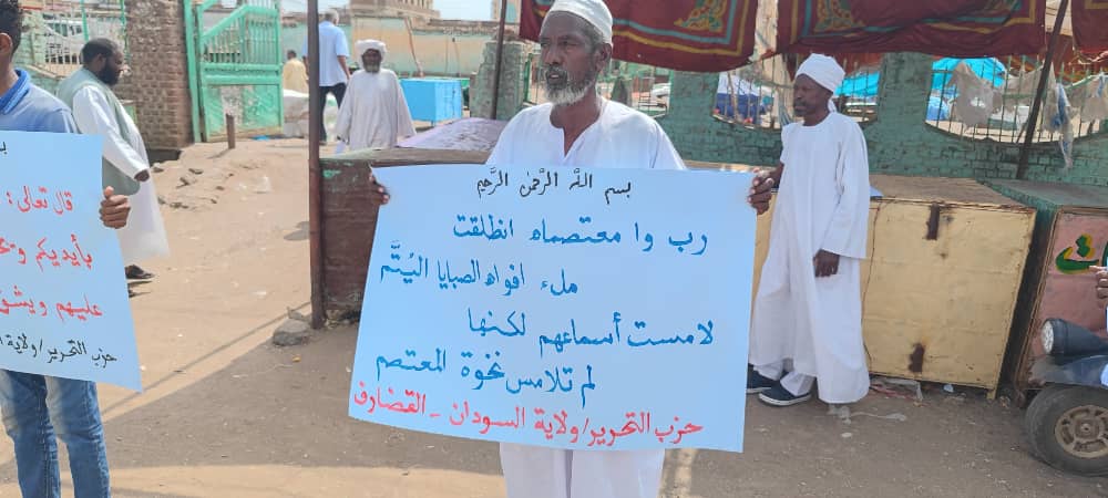 أما الوقفة الثانية، فكانت أمام مسجد الشريف أبو كرد بحي أبايو العريق بالقضارف، حيث قام الشيخ محمد الحسن أحمد - عضو مجلس حزب التحرير في ولاية السودان، وإمام المسجد، قام عقب صلاة الجمعة بقيادة المصلين بتنفيذ وقفة تضامنا مع أهل غزة أمام المسجد، حيث ألقى كلمة قصيرة عن فرضية نصرة المسلمين في فلسطين، وجدت تفاعلا كبيرا من المصلين وسط تكبيرات وتهليلات ضجت بها ساحة المسجد.