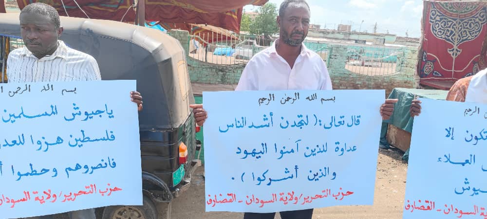 نظم حزب التحرير/ ولاية السودان، في مدينة القضارف، أمس الجمعة، وقفتين نصرة لغزة، واستنفارا لجيوش المسلمين واستنهاضا لهمم أبناء الأمة.