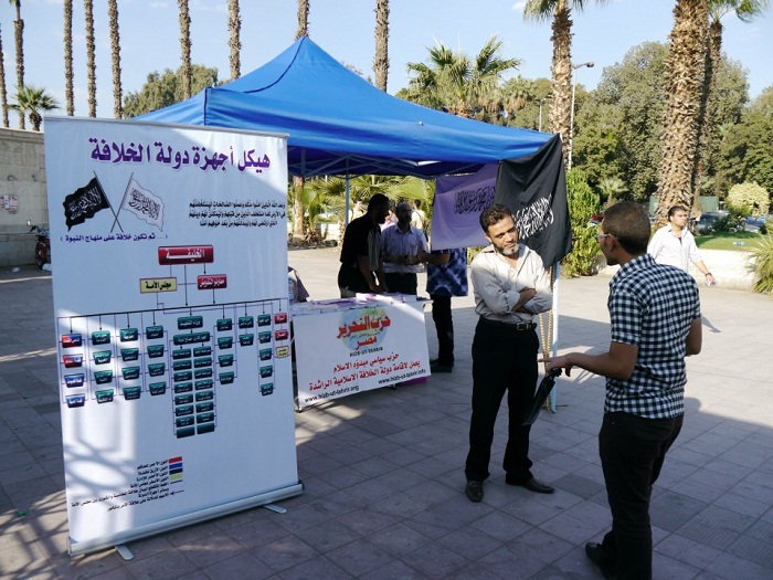 مواصلة للحملة التي باشر تنظيمها حزب التحرير/ولاية مصر للتعريف بمشروع دستور دولة الخلافة تحت شعار "دستور مصر يجب أن يكون دستوراً إسلامياً"، قام شباب الحزب يوم الأربعاء 24 ذو القعدة 1433هـ الموافق 10 تشرين أول/أكتوبر 2012م بنصب خيمتهم المتحركة أمام البوابة الرئيسية لجامعة القاهرة، حيث قاموا إلى جانب توزيع البيان الصحفي والكتيب بخوض نقاشات هامة بناءة مع طلبة العلم الذين واصلوا توافدهم على الخيمة بأعداد كبيرة.
