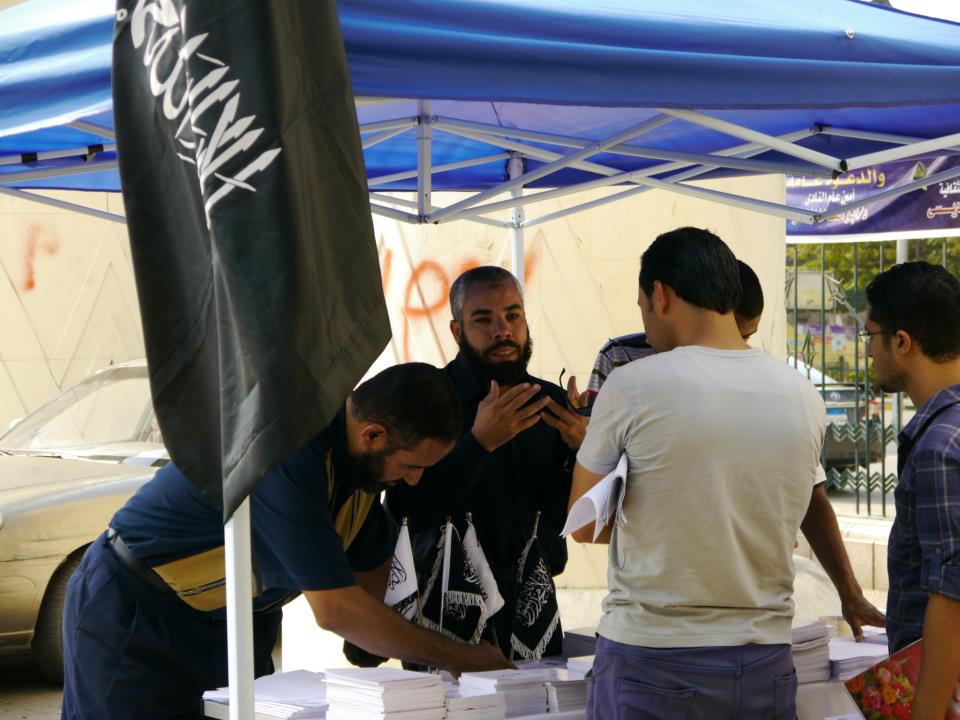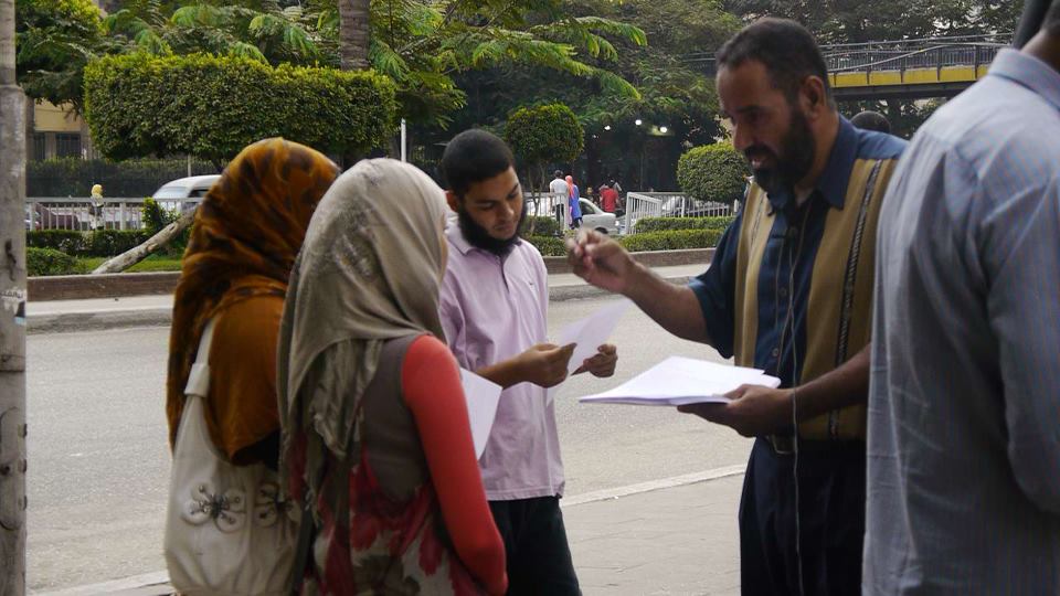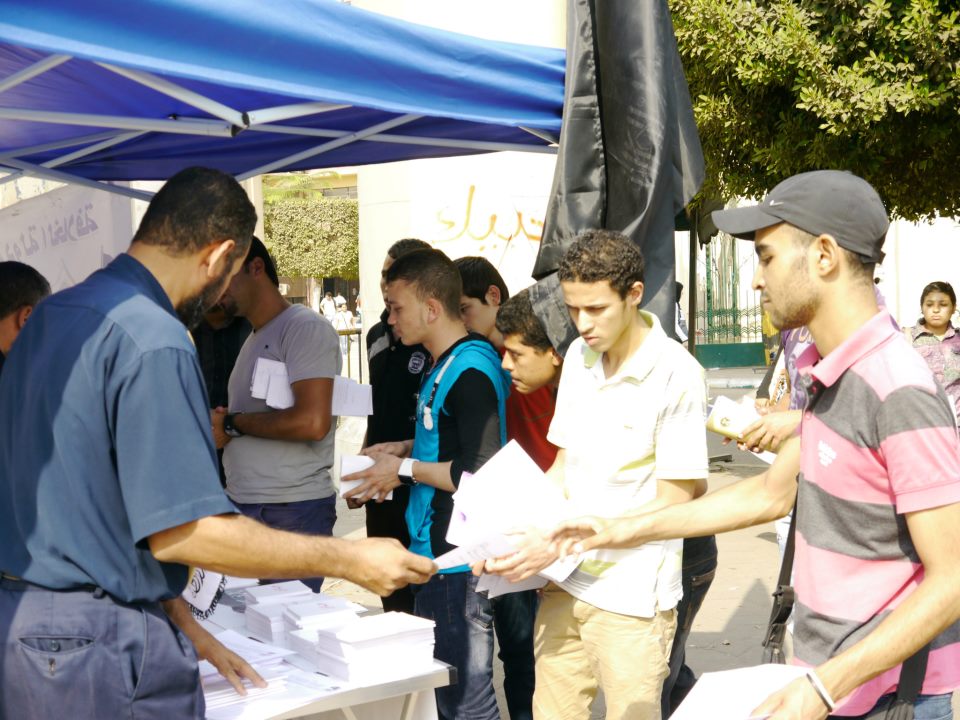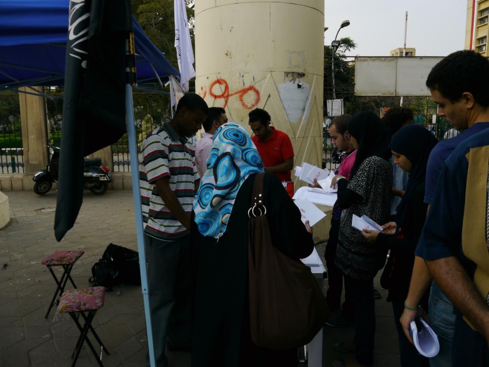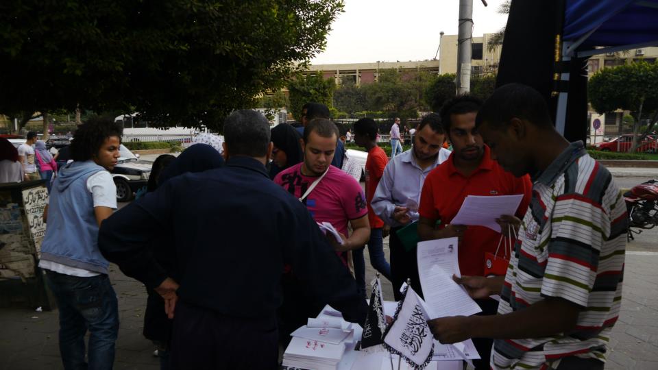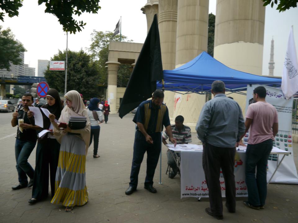 استكمالاً للحملة التي باشر تنظيمها حزب التحرير/ولاية مصر للتعريف بمشروع دستور دولة الخلافة تحت شعار "دستور مصر يجب أن يكون دستوراً إسلامياً"، قام شباب الحزب يوم الأربعاء 08 ذو القعدة 1433هـ الموافق 24 تشرين الأول/أكتوبر 2012م بنصب خيمتهم المتحركة أمام جامعة عين شمس، حيث خاضوا نقاشات بناءة مع طلبة العلم الذين واصلوا توافدهم على الخيمة، والحمد لله رب العالمين.