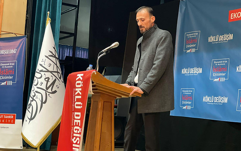 نظم حزب التحرير / ولاية تركيا في المركز الثقافي بمدينة تطوان في ولاية بيتليس مؤتمراً اقتصادياً بعنوان "الحل الإسلامي للأزمة الاقتصادية!" بالتزامن مع مناسبة الذكرى الهجرية الـ101 لهدم دولة الخلافة في 28 رجب المحرم 1342هـ.