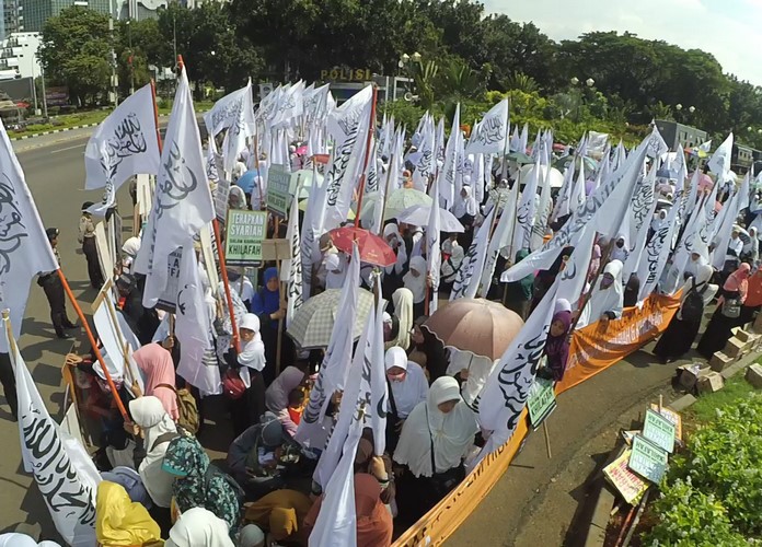 It is no secret that 1500 brothers and sisters who are supporters of Hizb ut Tahrir came to National Monument in Jakarta distributing leaflets alongside roads to confirm that Islam is guidance and mercy which will be seen through the establishment of the second Khilafah "Caliphate" Rashida.