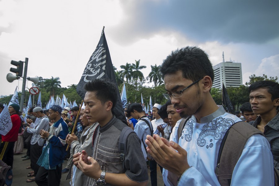 About 20,000+ Muslims including 10,000 women held a large rally for peace action on 4th September 2016 in front of the Jakarta National Monument.