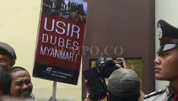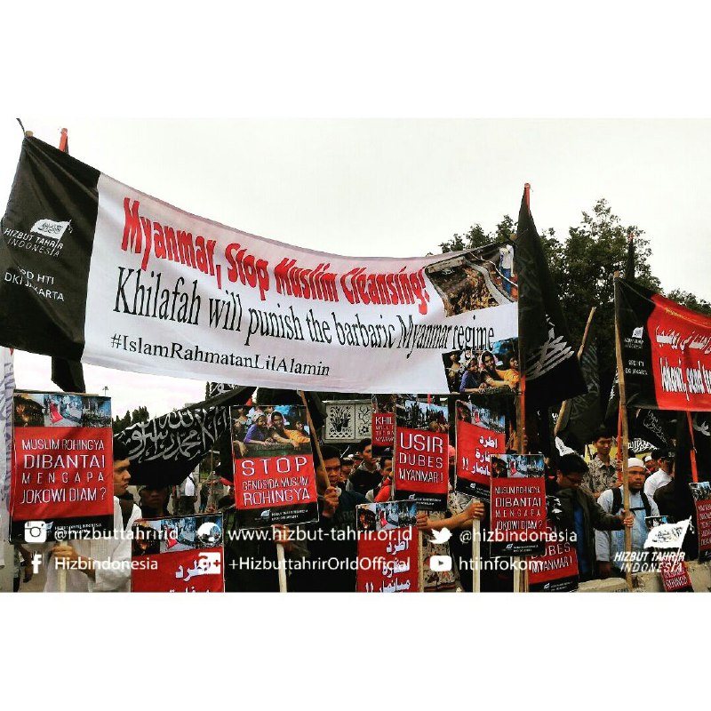 The most notable of the events was the Demonstration organized by the Hizb in Jakarta in front of the Myanmar Embassy where talks were given and raised slogans were raised such as "Stop the Rohingya genocide","Expel the Myanmar Embassy," "We are Muslims in Indonesia, will not surrender our Rohingya brothers!"