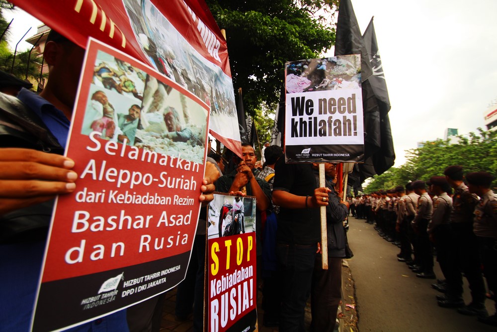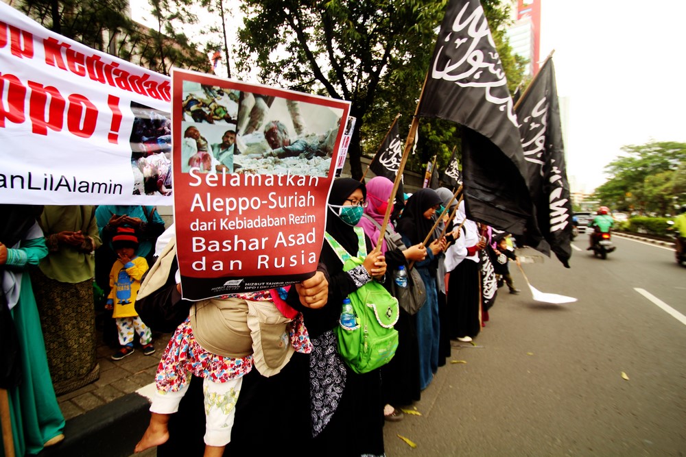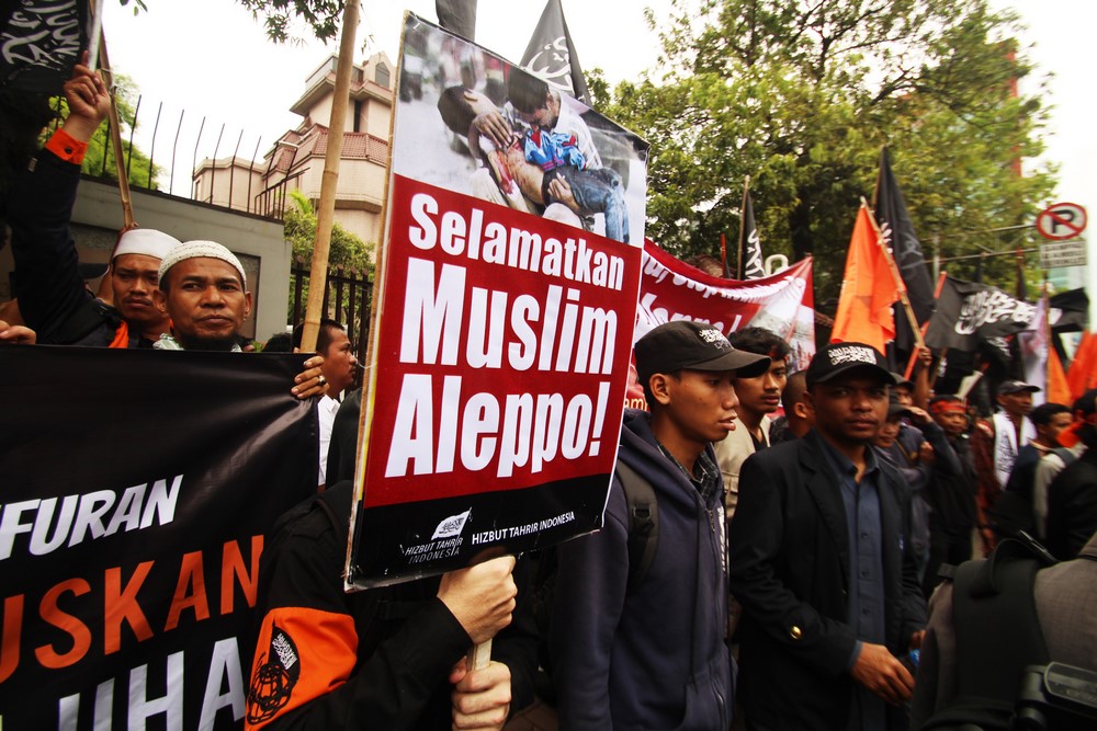 Hizb ut Tahrir/ Indonesia: Protest in support of Aleppo in front of Russian Embassy in Jakarta