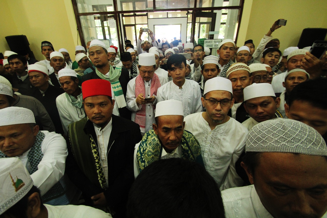 The atmosphere became very calm and heroic when hundreds of Islamic scholars, ulemas, students and muslin activists from various regions chanted Shalawat Asyghil walking along the streets to the Administrative Court (PTUN). They showed solidarity and support to Hizb ut-Tahrir Indonesia (HTI) Spokesman Muhammad Ismail Yusanto who handed over the conclusion of the lawsuit on Thursday (19/4) at the Administrative Court, East Jakarta.