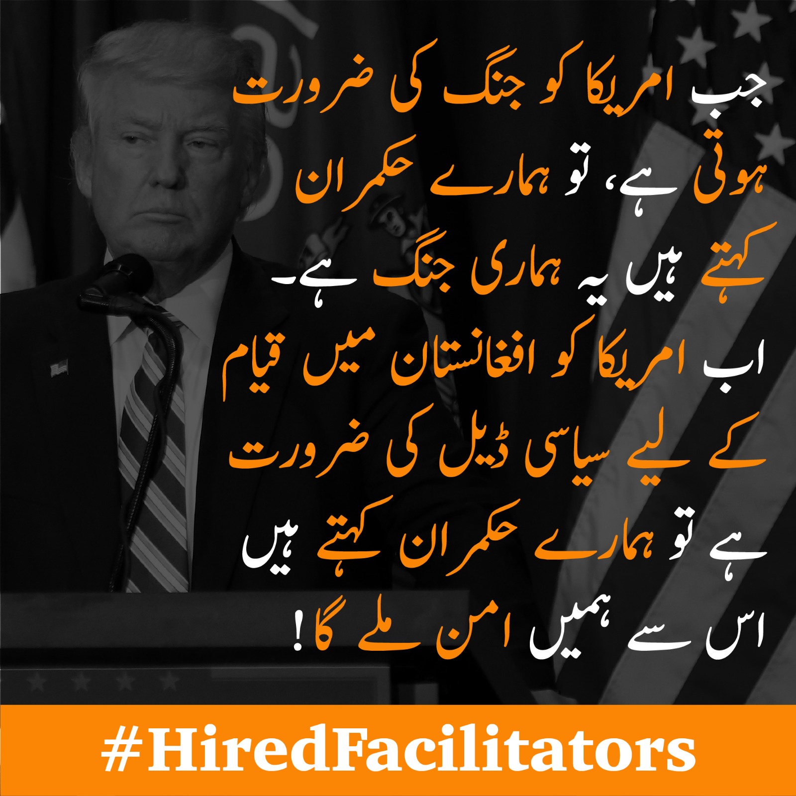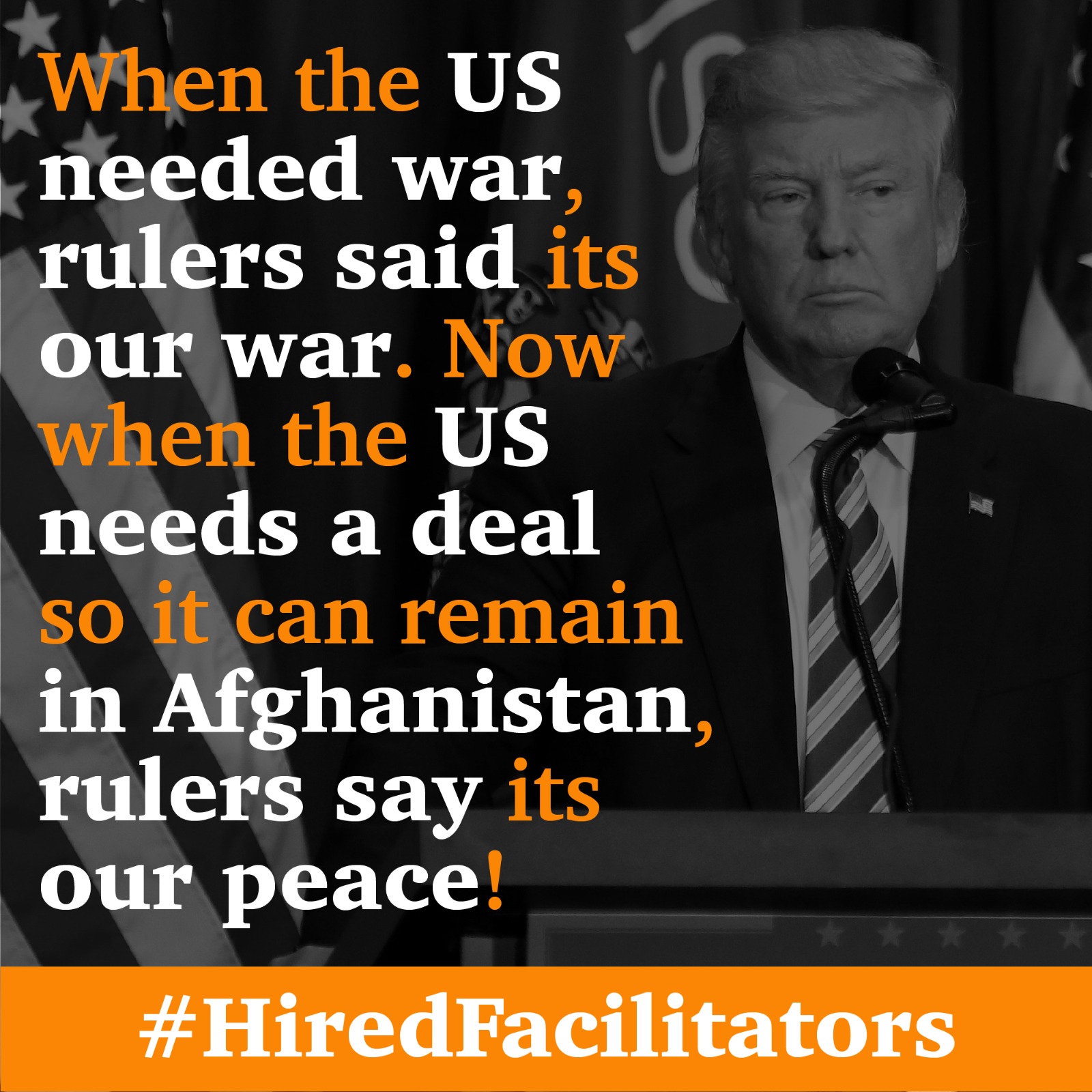 When US needed war, rulers said its our war. Now when the US needs a deal so it can remain in Afghanistan, rulers say its our peace. #HiredFacilitators