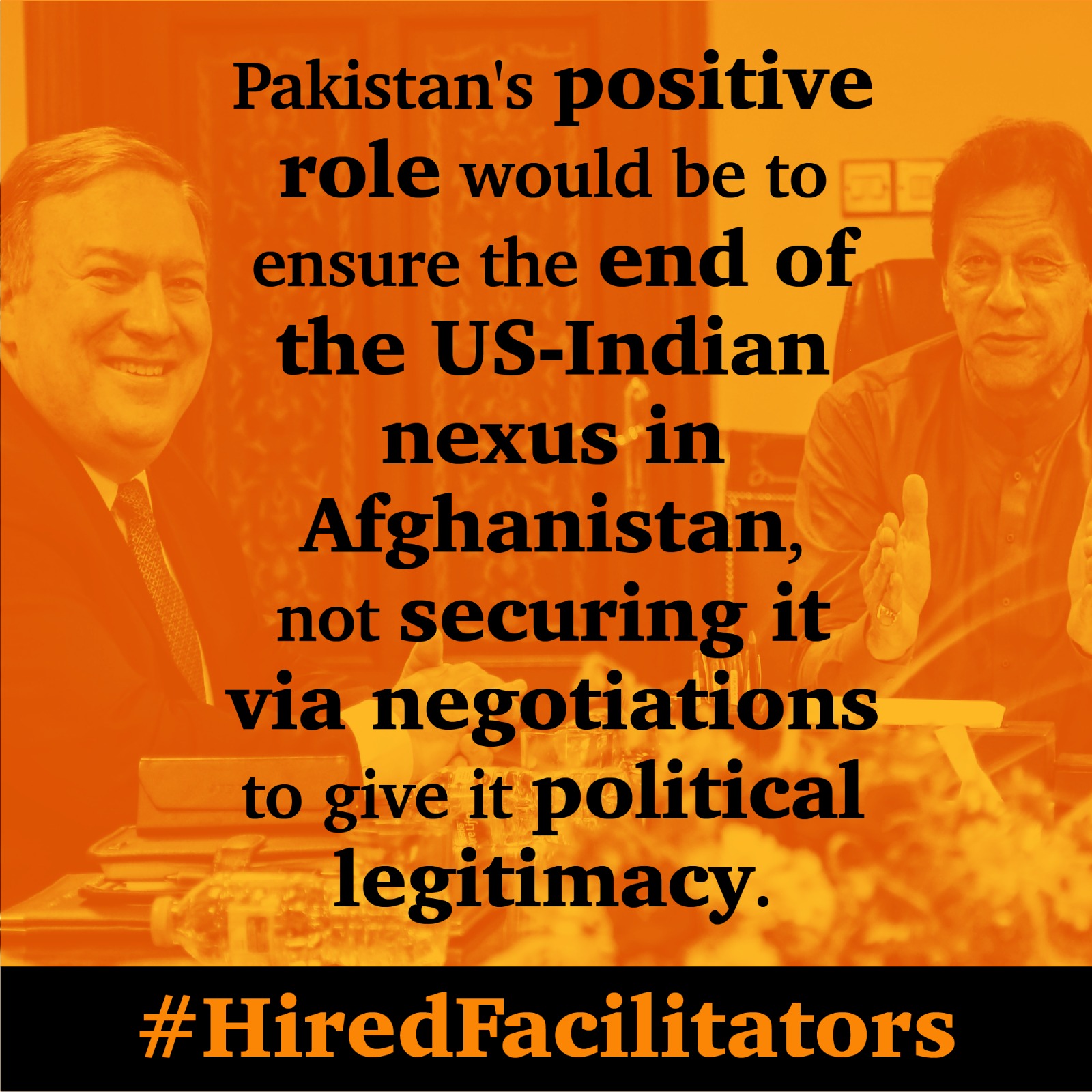 Pakistan's positive role would be to ensure the end of the US-Indian nexus in Afghanistan, not securing it via negotiations to give it political legitimacy #HiredFacilitators