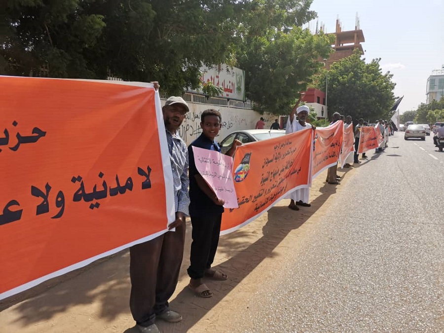 Hizb ut Tahrir / Wilayah Sudan held the stand that called for rejecting the provision for separating religion from the state (secular), in the agreement that was concluded between Prime Minister Abdullah Hamdok and Abdel Aziz Al-Hilu, before the Council of Ministers, on Wednesday 21 Muharram 1442 AH corresponding to 09/09/2020 at two in the afternoon. Where the Shabab of the Hizb, supporters and others participated in the stand, and they raised huge banners and medium-sized posters hundreds of meters long in front of the cabinet building.