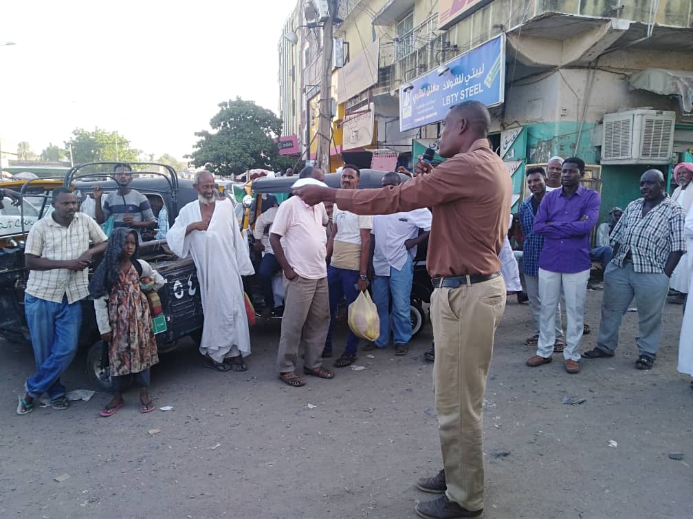 In the context of the recent increases in fuel prices, the Shabab of Hizb ut Tahrir / Wilayah Sudan in Madani locality held a public address at the bus stop in the Great Market on Tuesday, June 15, 2021 the title: “The Transitional Government doubles fuel prices and goes far in impoverishing its people by the instructions of its masters,” in which Abdulaziz explained that the transitional government implements the instructions of the International Monetary Fund and does not care about the hardship of living resulting from the increase in fuel prices.