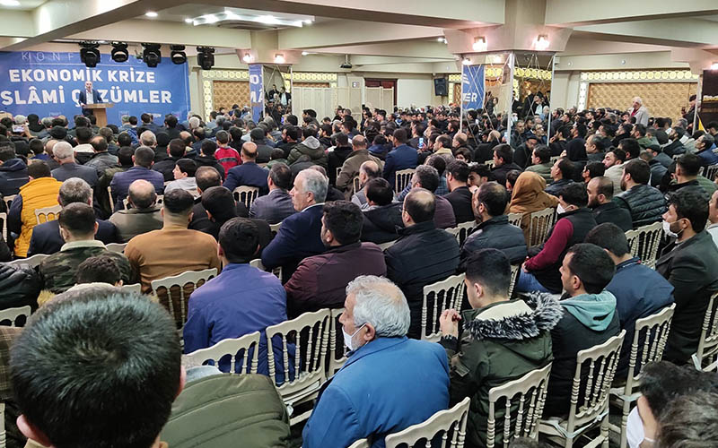 Mehmet Göçmen , started with the recitation of the Qur'an. Mustafa Küçük took the podium and greeted the guests with his opening speech. Dr. Abdurrahim Sen gave a talk on 'Islamic Solutions to Economic Crises' in which he gave examples of the 13 centuries of Islamic history, as well as engraving in the minds that the Islamic economic system is the most correct and successful system. He mentioned that the economic crisis that is currently sweeping across Turkey is the capitalist economic system, the inequality in income distribution, and statesman's betrayal of the state treasury entrusted to them, by citing both statistics and examples reflected in the public opinion. Dr. Şen stated that if only the rich give zakat in numbers, the people will be saved from misery, and that this is the duty of the state itself. He gave an example during the reign of the caliphate of Abu Bakr (ra) when the Islamic State declared war on those who did not want to give zakat.
