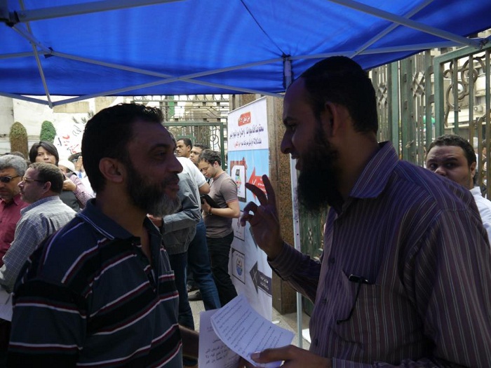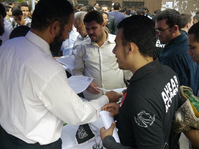 Hizb ut-Tahrir / Wilayah Egypt successfully continued its widespread campaign to introduce and outline the proposed Constitution for the Islamic State; titled "Egypt's Constitution Must Be an Islamic Constitution." It took place Friday, the 02 Muharram 1434 AH, November 16, 2012. A mobile information tent was set up in front of al-Fat'h Mosque in Ramses / Cairo. Alhamdulillah, large numbers poured into the tent sparking positive discussions with inquiring questions.