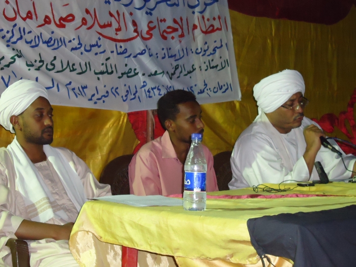Hizb ut Tahrir / Wilayah Sudan organized a political seminar in Badara Baldgenat south of Khartoum on Friday, 12 Rabii II 1434 AH, 22 February 2013, at 7:30 in the evening. The political seminar was titled: "The Social System in Islam is the Safety Valve for Society".