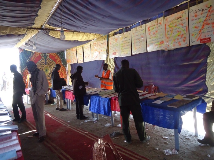 Amidst an attendance described as unprecedented in the field of intellectual and political debates, a large number of people from the Madinat al-Abyad "Arus al-Rimal", 600 km southwest of the capital Khartoum, gathered to participate in the Islamic Political Book Fair organized by Hizb ut Tahrir / Wilayah Sudan during the period from 05/01/2014 to 10/01/2014. The book fair offered numerous books and publications covering all life systems. It also offered many posters and stickers reflecting Islam's economic, political, social and other viewpoints, as well as the Islamic viewpoint on the crises and calamities plaguing mankind today. The fair's guests raised many points and questions about the offered culture through panel discussions that accompanied the exhibition throughout its five day opening in a fraternal and friendly atmosphere, aiming to expand the circle of awareness among the masses in Madinat al-Abyad.