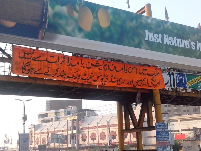 Hizb ut Tahrir Wilayah / Pakistan displayed huge banners in Pakistan's biggest city, Karachi, home to over twenty million people. The banners proclaimed that peace will only be achieved once America's Raymond Davis network is eradicated from Pakistan. Indeed, Khilafah "Caliphate" will end the American presence which is the cause of bombings and chaos in Pakistan.