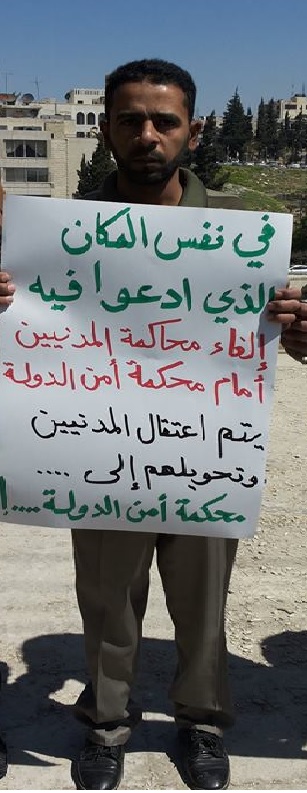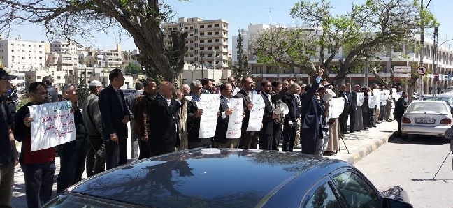 Hizb ut Tahrir/ Wilayah Jordan organized a stand before the Jordanian House of Representatives on TGuesday, March 25, 2014 to denounce the fact that the Jordanian security services arrested two members of Hizb ut Tahrir, which they are confined to the House of Representatives and transferred them to the State Security Court. They are Doctor Nayef Omar Lafi (65 years old) and Brother Ibrahim Mahmoud Kharabsheh (55 years) who were among a delegation comprising members of the Hizb. The delegation was communicating with members of the House of Representatives and handed them a statement issued by the Hizb; outlining the party's stance against a draft law amending the Prevention of Terrorism Act and warning them of it and calling to stop it being passed.