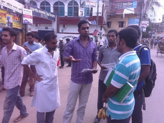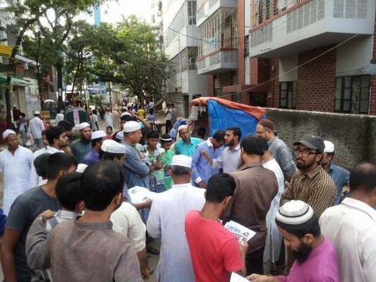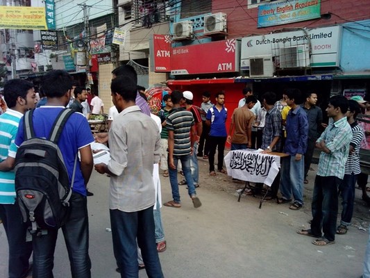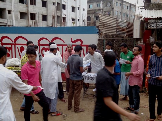 Members, activists and supporters of Hizb ut Tahrir gave their best effort in this blessed month of Ramadan to convey to the people the grave importance of re-establishing the Khilafah "Caliphate" and that the Khilafah "Caliphate" is the only way to liberate the Muslims of Palestine. They started their work on the first Friday of Ramadan (06 Ramadan / 04 July) with mass distribution of the leaflet issued by Hizb ut Tahrir, Wilayah Bangladesh, titled "Dying under the Hasina-Khaleda Regime is a Death of Jahiliyyah and Removing this Kufr Regime is an Obligation." On that day they distributed thousands of leaflets in Dhaka, Chittagong, Sylhet, Rajshahi and Comilla and they followed that up in the next 3-4 days; in total more than 150,000 leaflets were distributed by them within these 4-5 days.