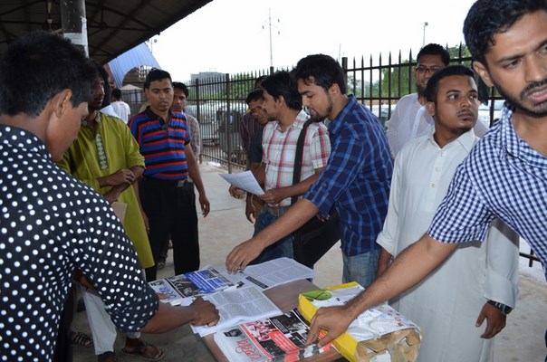 The Shabab of the Hizb continued their work with great dedication by setting up "Public Interaction Stalls" at multitude of public gathering places such as in front of mosques, busy streets, entrance to markets and inside Dhaka University. They mingled with the Ummah and held interactive discussions. The Shabab were highly enthusiastic in interacting with the Ummah who expressed their support for the Call of the Hizb. Stalls were arranged on several days for the past two weeks. In addition to the stalls, the members, activists and supporters of the party also arranged Bayans outside dozens of mosques after Dhuhr and Asr prayers on various days throughout these two weeks.