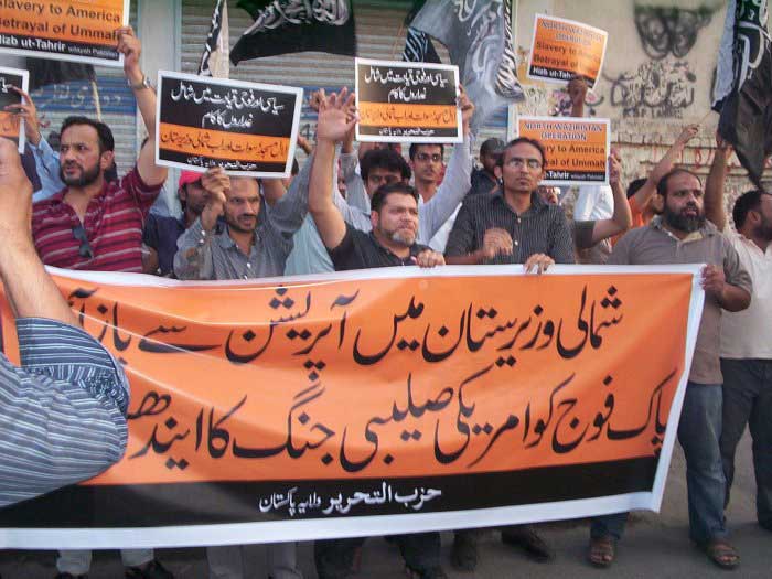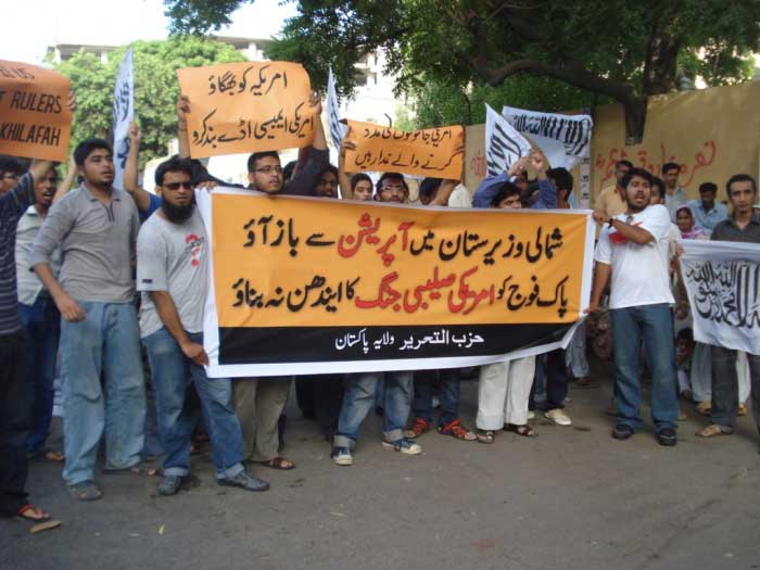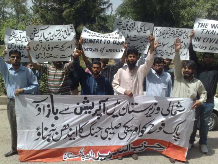 On 6 June 2011, Hizb ut-Tahrir Wilayah Pakistan arranged demonstrations against military operations in North Waziristan. The banner read, "Reject North Waziristan operation, don't allow Pak Army to be used as fuel for America's crusade." The protests demanded that all operations in the tribal areas are immediately halted and instead of fighting mujahideen, the mission of uprooting America from the region must be intitiated. They said that the purpose of the operations is to save America from certain defeat. They asked how can anyone say that America's crusade is our war when only innocent Muslims are killed, as in Lal Masjid and Jami'a Hafsa, Swat, Bajour and South Waziristan? Will the sincere in the Pakistan's Armed Forces still sit on their hands? O sincere officers of Pakistan's armed forces! Fulfill your oath and remove the traitors amongst the military and civilian leadership and give Hizb ut-Tahrir the Nussrah (Material Support) so that the Khilafah "Caliphate" is established which will end the American presence in the region.