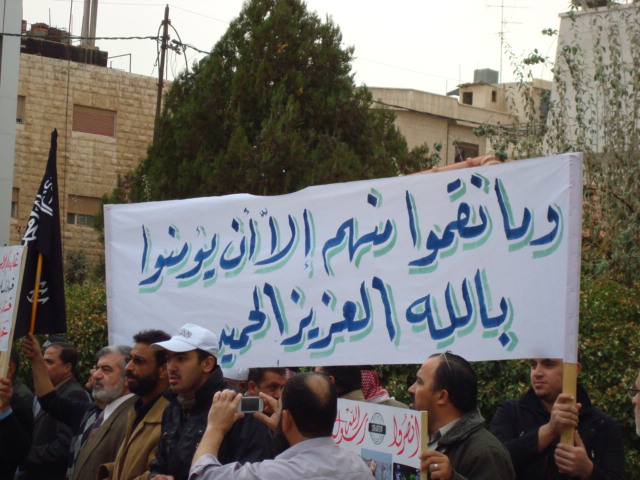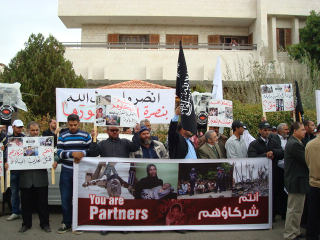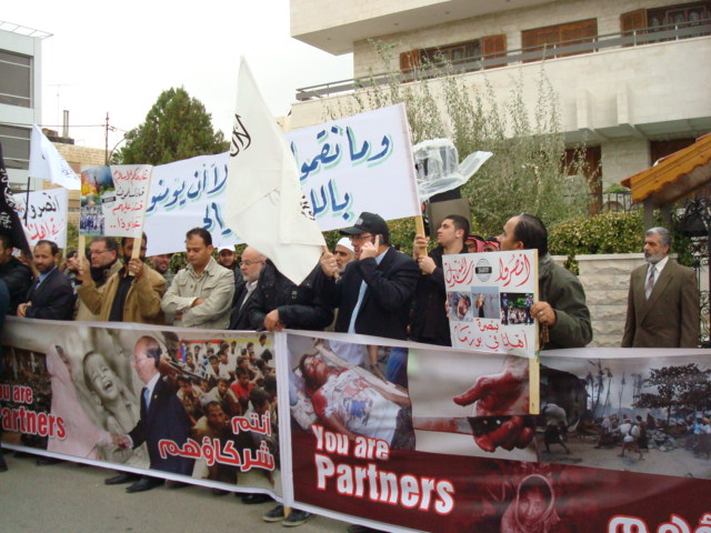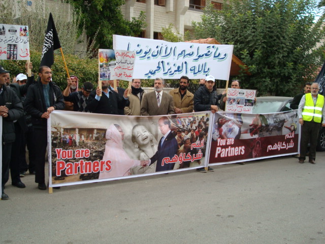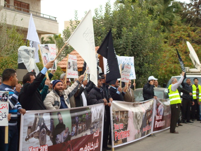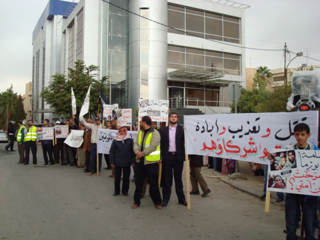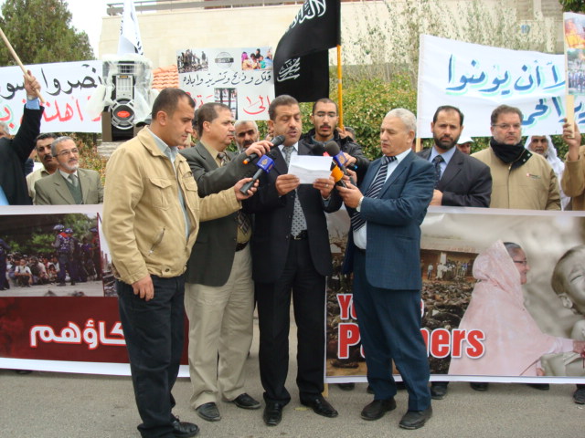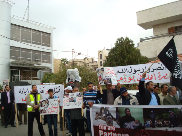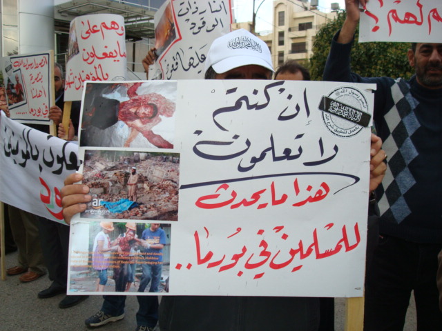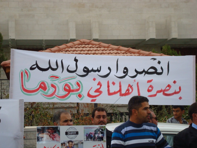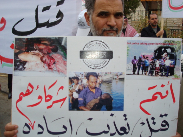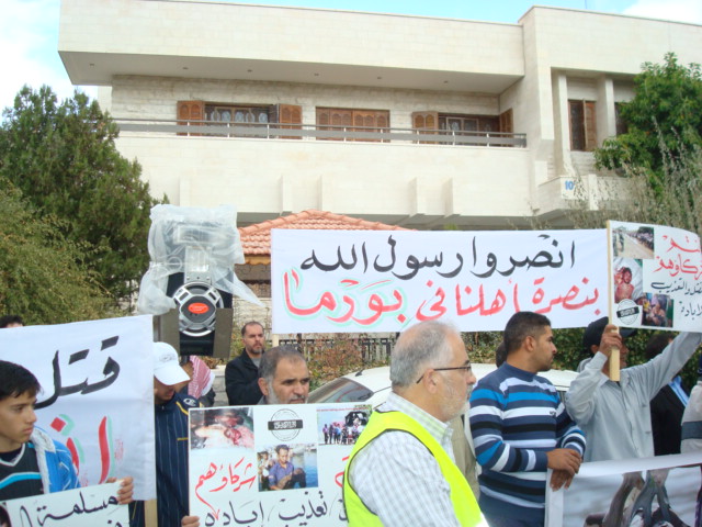 Alhamdulilah through Allah's Guidance Hizb-ut Tahrir/ Wilayah Jordan organized a protest in front of the Bangladesh Embassy in Amman on Sunday 26 Dhul Hijjah 1433 H, 11 November 2012. The protest was titled: "You Are Their Partner" amid a heavy security presence. Loud chants of Allahu Akbar soared throughout the place, alongside chants scolding Hasina's lowly regime. Several speeches were given; demanding the mobilizing of the Bangladesh armies to rescue Myanmar Muslims from their despair. A committee from Hizb-ut Tahrir / Wilayah Jordan submitted an open communique to the Deputy Ambassador in Amman addressed to the leaders of Bangladesh. A press release was also issued by Hizb-ut Tahrir / Wilayah Jordan.