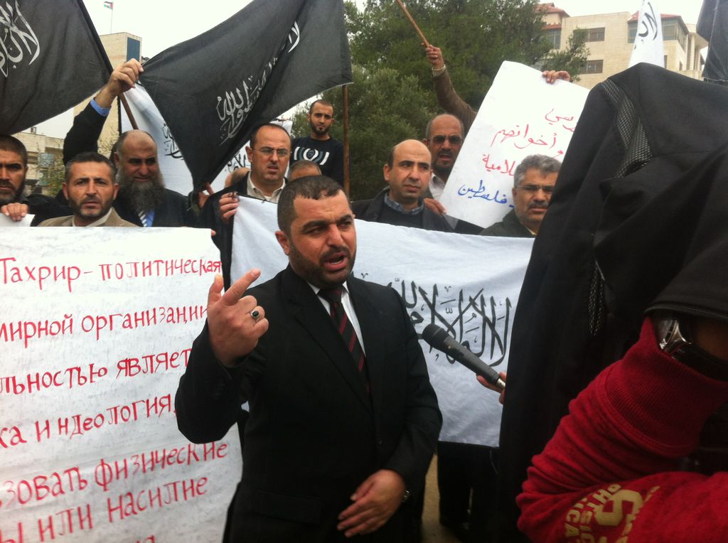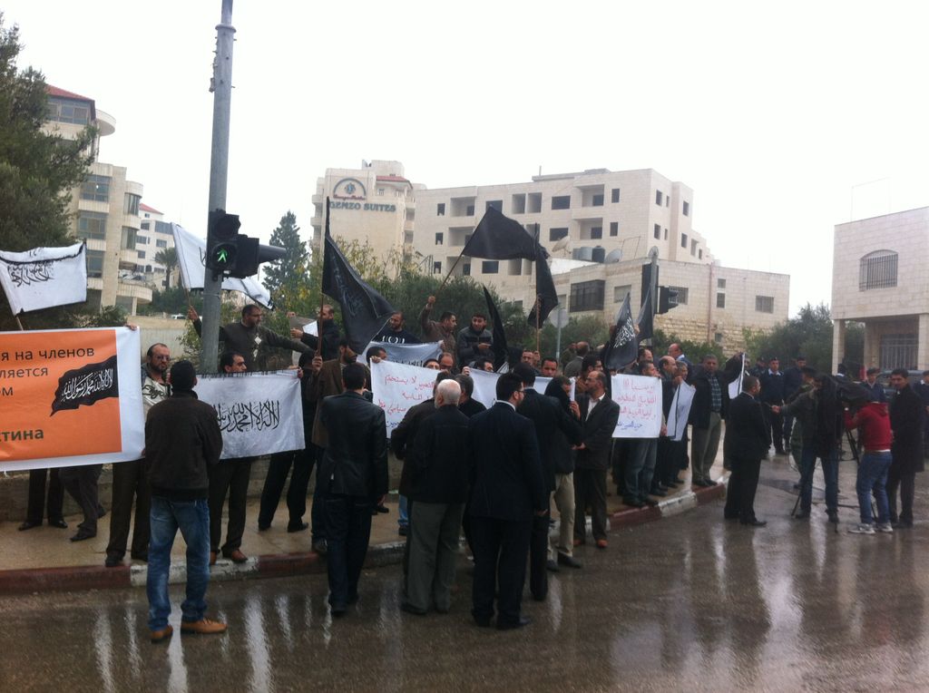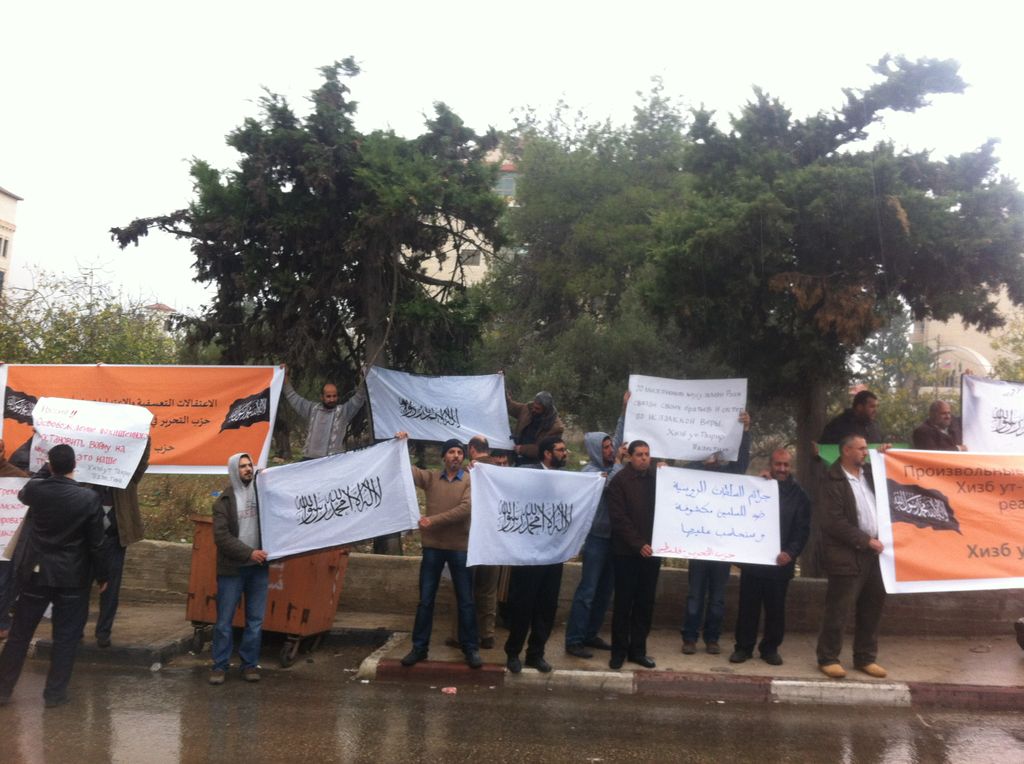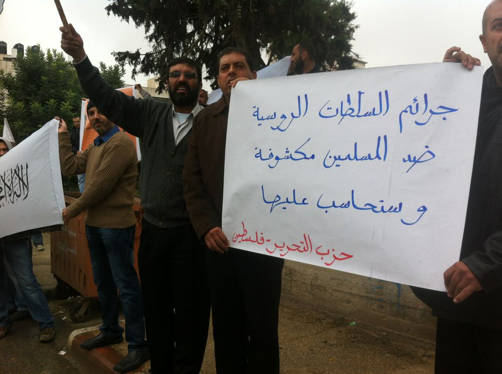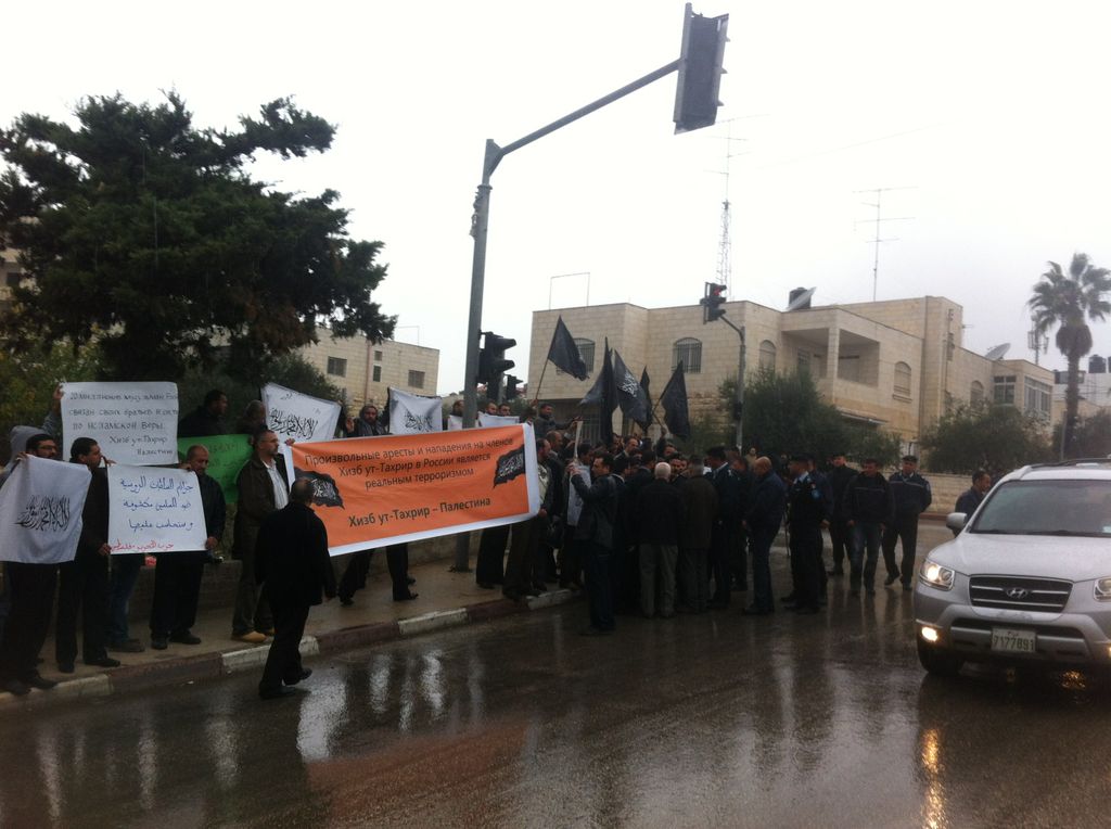 Hizb ut Tahrir Palestine organized a protest on Tuesday, 20 Muharram 1434 AH, 04 December 2012 near the Representation Russian in Al-Bireh, Ramallah. To protest the actions of the Russian authorities, this includes raids and arrests of Hizb activists in Russia. The presence of dozens of participants and various media were seen. Demonstrators raised a large banner bearing the words "Arbitrary Arrests and Attacks against Members of Hizb ut Tahrir in Russia is the Real Terrorism" in Arabic and Russian.