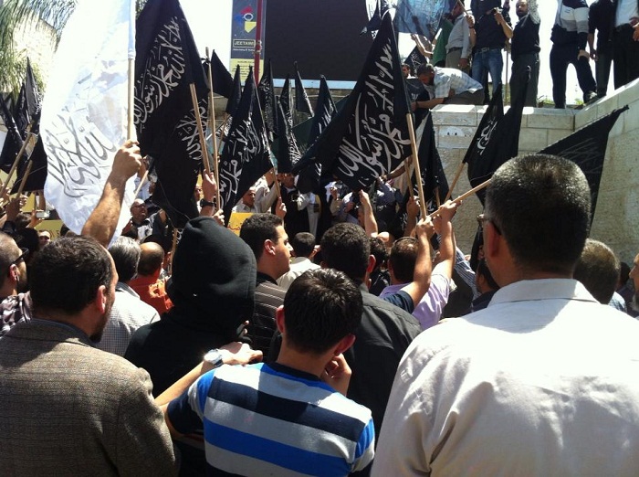 Hundreds gathered in protest, the spokesman of Hizb ut Tahrir stated, " Hizb ut Tahrir in Palestine has invited people to expose what isn't depicted in the Syrian Revolution that the media and the tyrant rulers try to conceal and most importantly try to hide that the fact that Muslims in the land of al-Sham support and work towards the Khilafah "Caliphate". These seminars held in the cities of the West Bank especially in the districts of Tulkarem and Jenin. The Palestinian Authority closed the halls and threatened hall owners coercing them to accept the PA's agreement. It also revealed their hatred towards Islam and the call for the Khilafah "Caliphate". Their reply was aggressive, un-restrained, and arrests were made to impose its leadership by force and oppression as what occurred on Thursday, April 25, 2013. Their aggression included use of batons and tear gas arresting nearly 20 men and many of them were minors similar to what the Jewish occupational forces do.