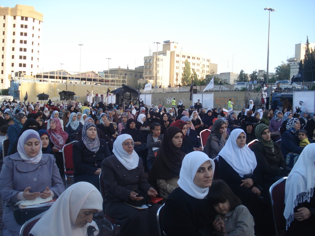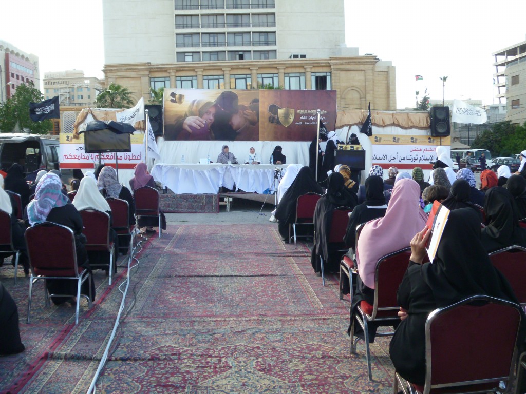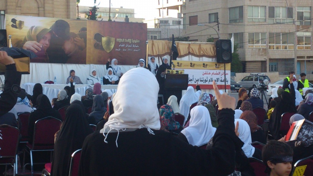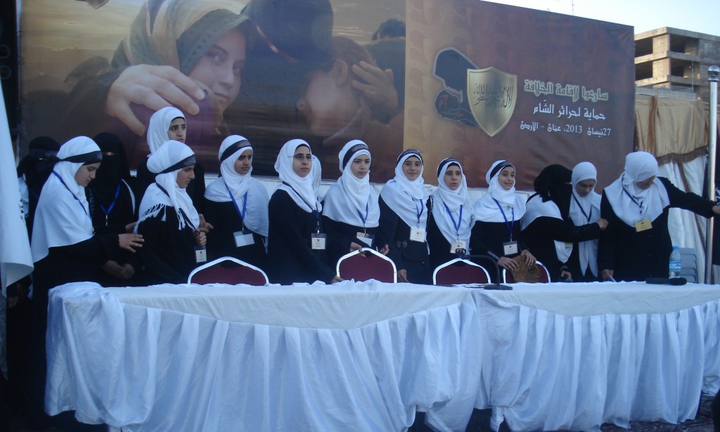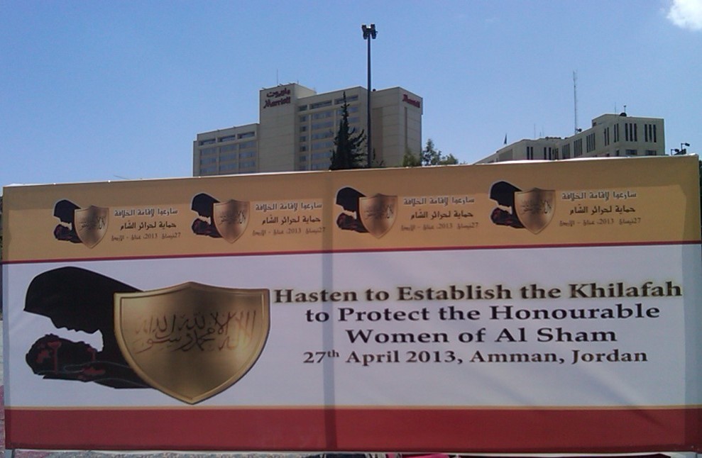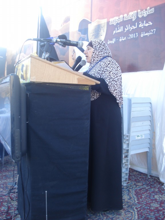 We have successfully completed the seminar "Hasten to Establish the Khilafah "Caliphate" to Protect the Honourable Women of Al-Sham" organized by Hizb ut Tahrir/ Wilayah Jordan on Saturday, 01 Rajab 1434 AH corresponding to 11 May 2013, which comes as part of a campaign for Muslims in support of the Syrian revolution. Amid a heavy security presence, Hizb ut Tahrir female members and guests attended the seminar. The pre-recorded opening speech was delivered by the Ameer of Hizb ut Tahrir Ata Bin Khalil Abu Al-Rashtah and included speeches from participating members and women of al-Sham who described their ordeals and patience under the tyrant Bashar's regime including their determination to work towards the Islamic Khilafah "Caliphate" which will eradicate the traitor regimes against Allah, His Messengers, and the Believers. The seminar also included video presentations of the sisters' activities in Hizb ut Tahrir throughout the world in support of the Syrian Revolution.