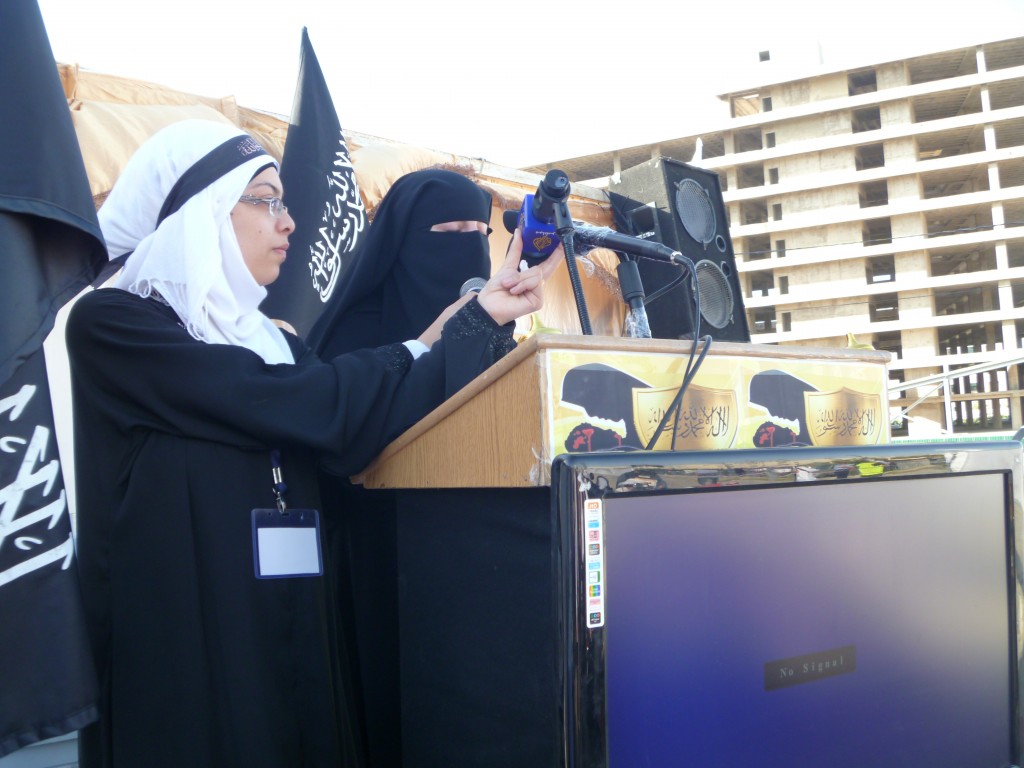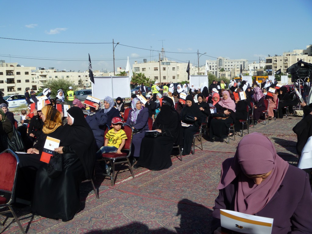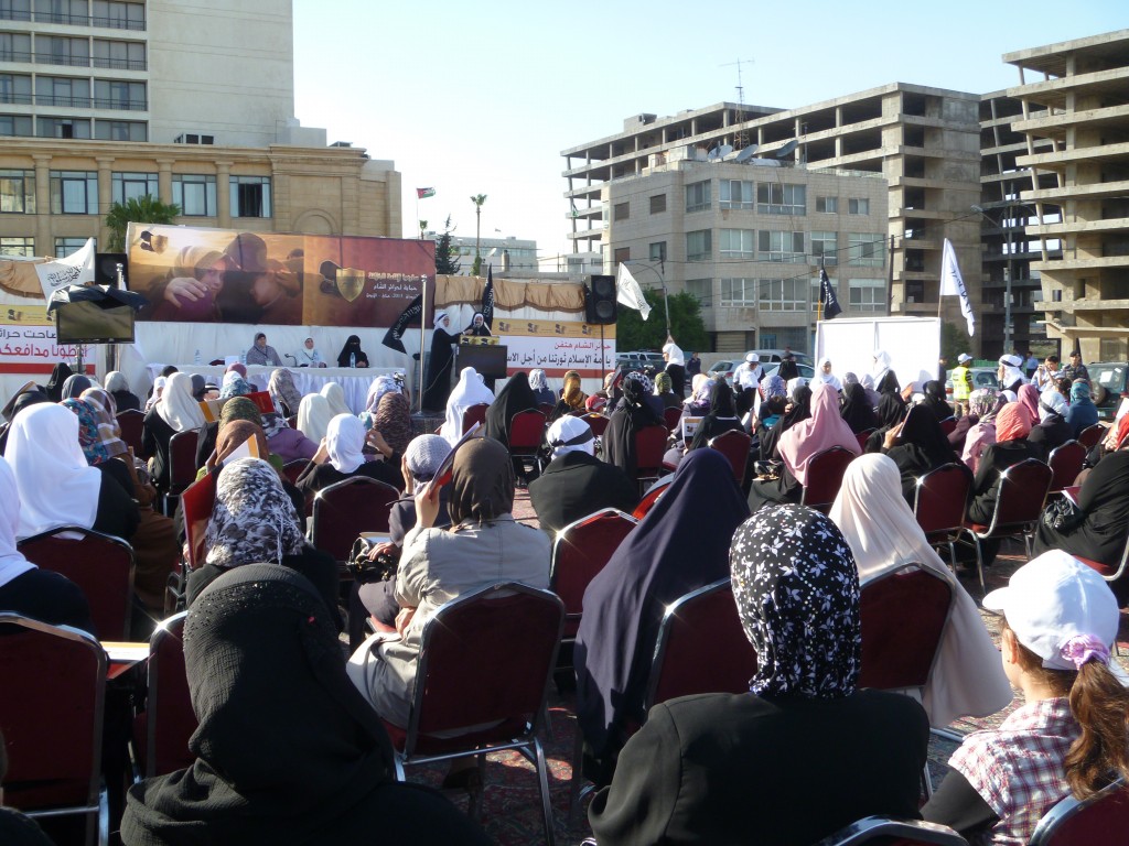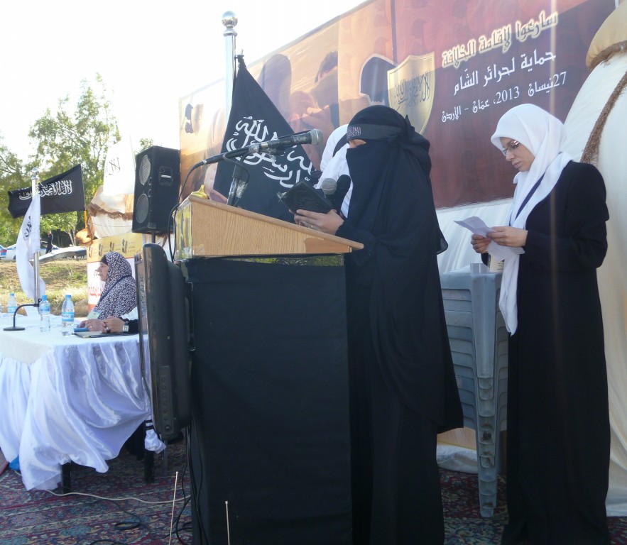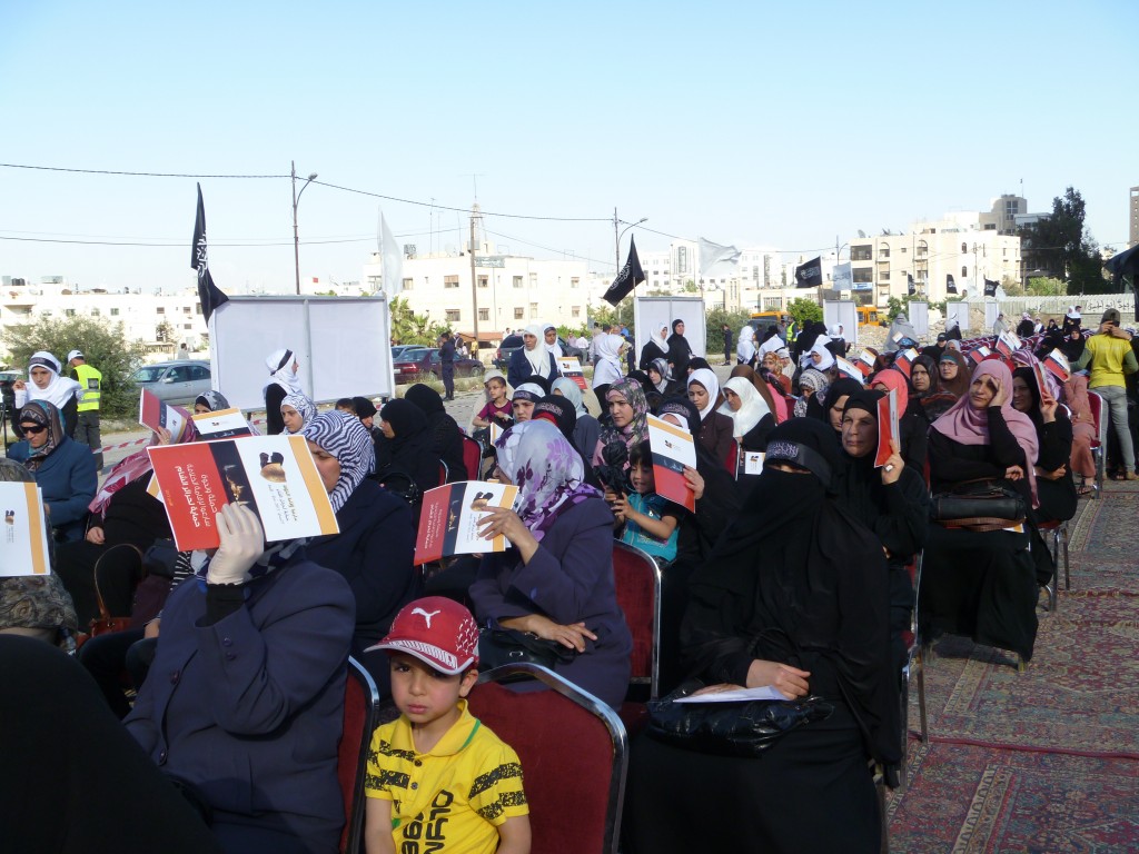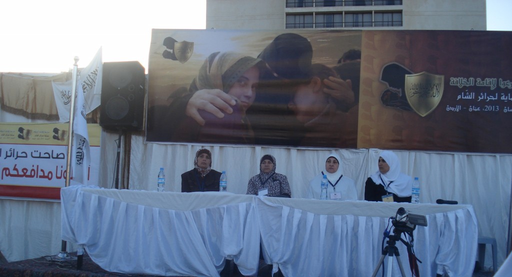 We have successfully completed the seminar "Hasten to Establish the Khilafah "Caliphate" to Protect the Honourable Women of Al-Sham" organized by Hizb ut Tahrir/ Wilayah Jordan on Saturday, 01 Rajab 1434 AH corresponding to 11 May 2013, which comes as part of a campaign for Muslims in support of the Syrian revolution. Amid a heavy security presence, Hizb ut Tahrir female members and guests attended the seminar. The pre-recorded opening speech was delivered by the Ameer of Hizb ut Tahrir Ata Bin Khalil Abu Al-Rashtah and included speeches from participating members and women of al-Sham who described their ordeals and patience under the tyrant Bashar's regime including their determination to work towards the Islamic Khilafah "Caliphate" which will eradicate the traitor regimes against Allah, His Messengers, and the Believers. The seminar also included video presentations of the sisters' activities in Hizb ut Tahrir throughout the world in support of the Syrian Revolution.