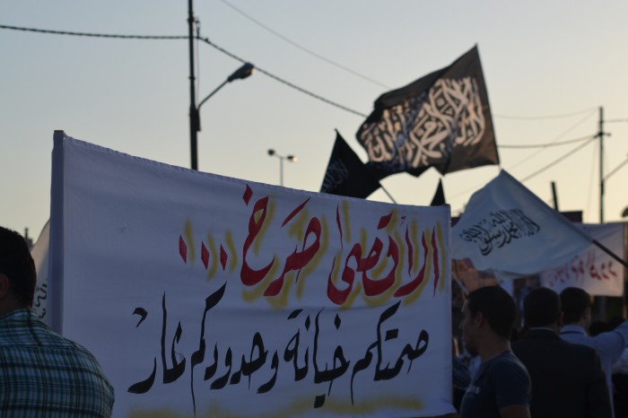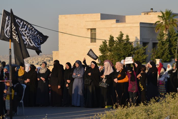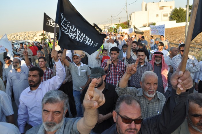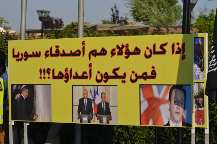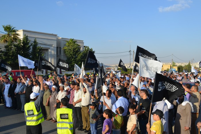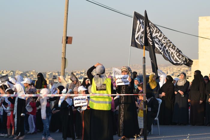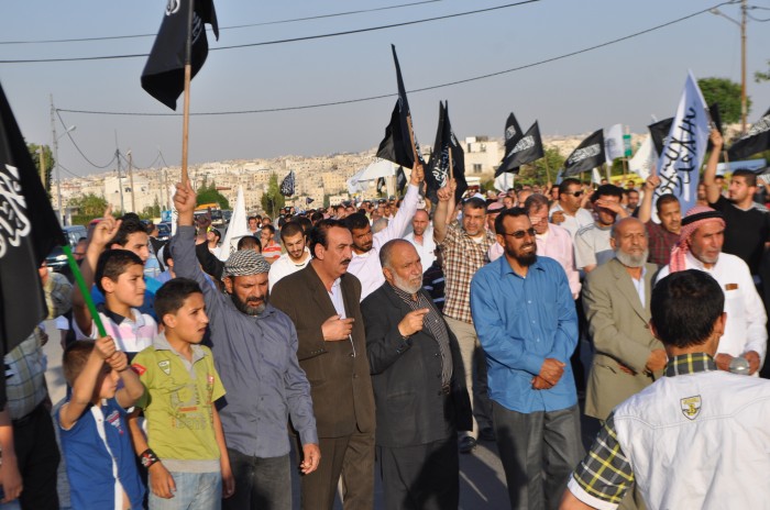 Alhamdulillah the stand organized by Hizb ut Tahrir/ Wilayah Jordan on Tuesday 11 Rajab 1434 AH corresponding to 21 May 2013, titled: "Stand for Victory for ash-Sham Revolution over the Butcher Murder Bashar" before the embassy of the criminal Assadi regime in Amman, Jordan, where a large crowd of people of Jordan answered the call and stood in victory for people in Syria amid the heavy security presence around the Embassy of the criminal Bashar.