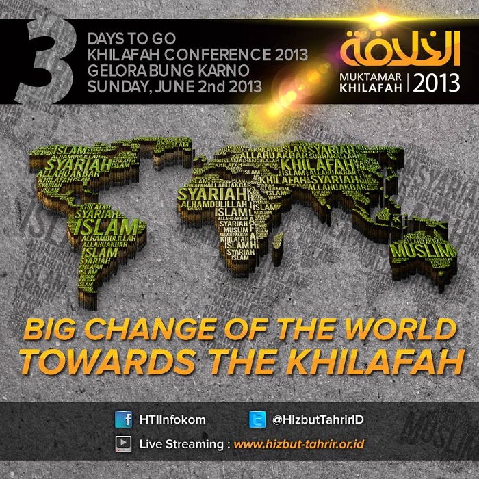 Hizb ut Tahrir will organize a global conference in Indonesia in which more than one hundred thousand Muslims are expected to attend to mark the 92nd Hijri anniversary of the Kafir's destruction of the Islamic Khilafah "Caliphate" State under the title of "A Magnitude Change of the World towards the Khilafah "Caliphate"." Prominent figures from Hizb ut Tahrir in Indonesia and other Islamic countries are scheduled to attend to discuss important issues concerning the fate of the Islamic Ummah.