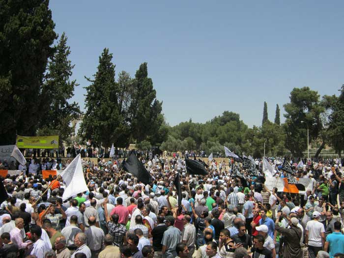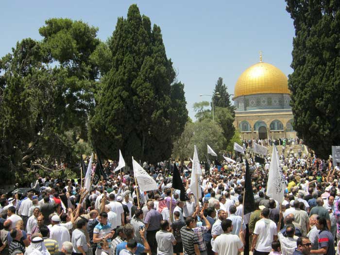 Despite the security alert and barriers set by the Jewish entity usurper to crack down on Muslims heading towards Al-Aqsa Mosque on Friday 28 Rajab 1434 AH, corresponding to 06 June 2013, responding to the advocacy campaign, and supporters of Hizb ut Tahrir, and supporters in Jerusalem, answering the appeal of the Hizb at the Aqsa Mosque to remind the Islamic Ummah of the tragic anniversary of the ninety-second demolition of the Caliphate State.