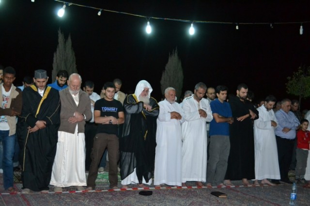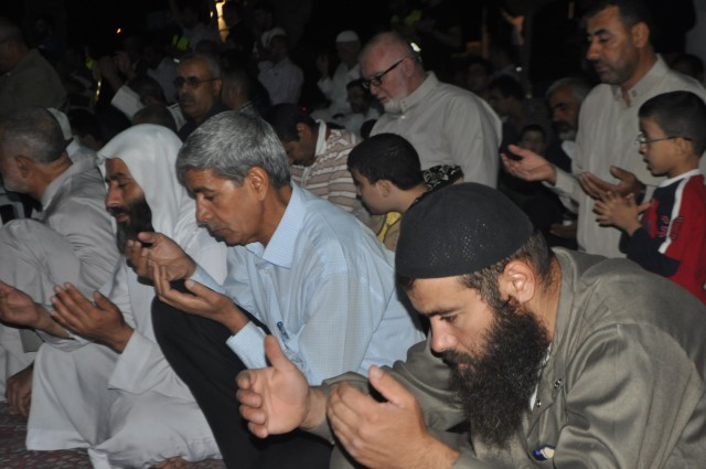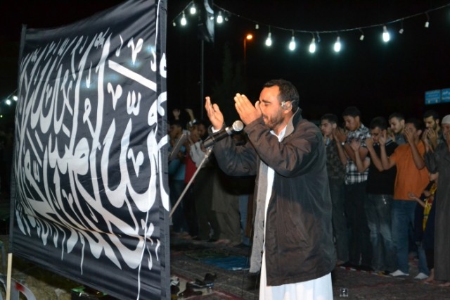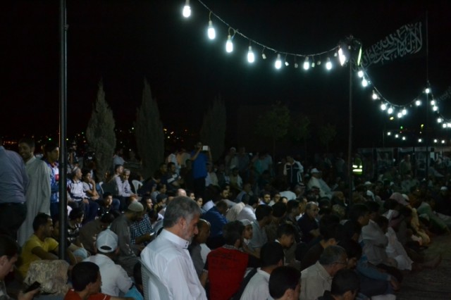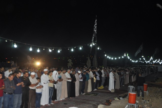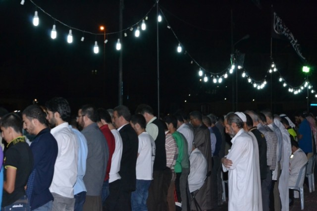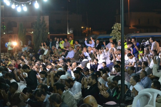 Alhamdulillah, the stand for the 29th night of Ramadan before the embassy of the tyrant criminal regime of Bashar organized by Hizb ut Tahrir/ Wilayah Jordan as part of their campaign in support of the Syrian Revolution titled, "For You, Oh Homs, will Remain Mighty Oh Sword of Allah." Amid heavy security presence; a large gathering of the sons and daughters of Jordan ash-Sham performed Qiyam Prayer. Hizb members delivered short speeches regarding the conspiracies of the Kufr countries and their government agents against the people of ash-Sham because their demand is the Khilafah "Caliphate". Duaa for victory and steadfastness for the people of ash-Sham and for the establishment of the Khilafah "Caliphate" State concluded the stand and then a group Fajr prayer was led.