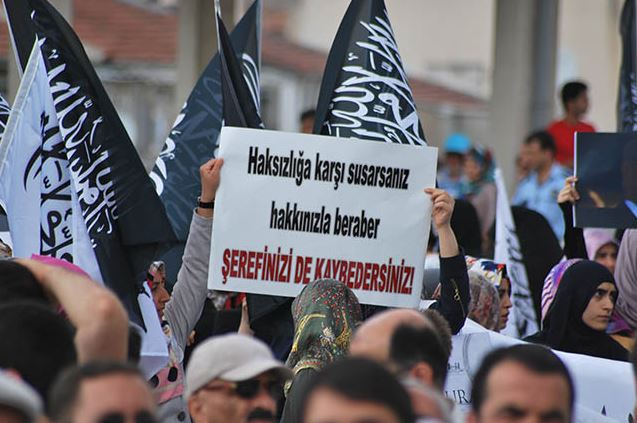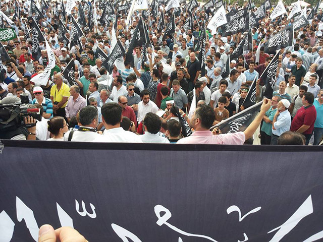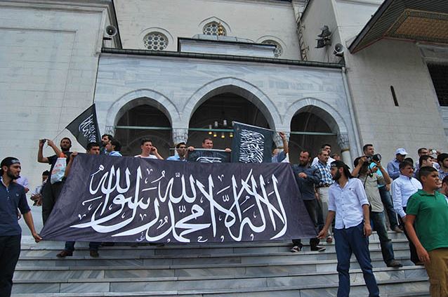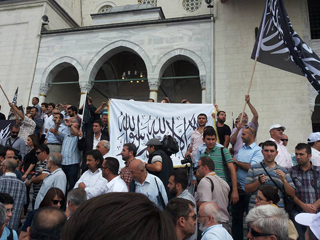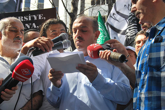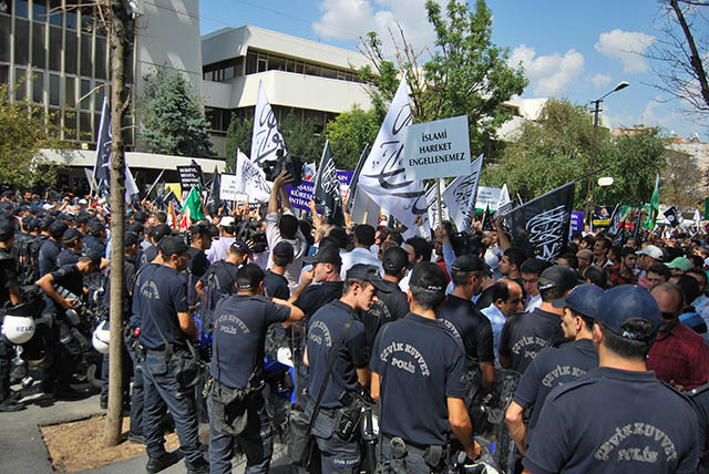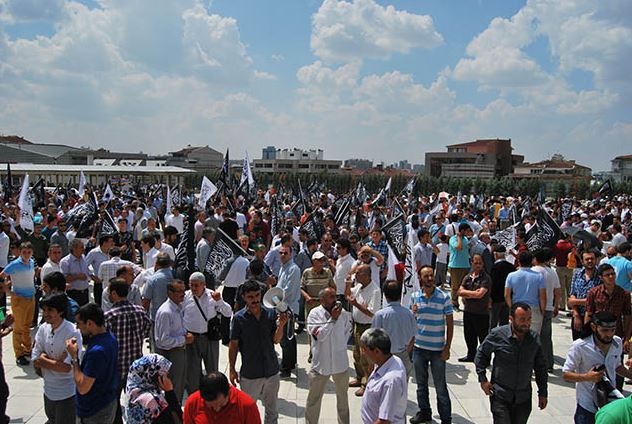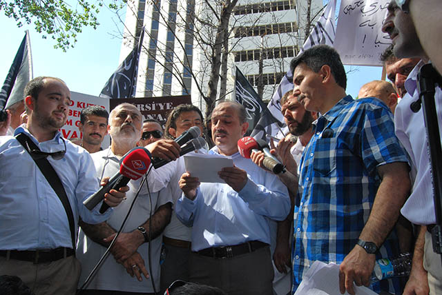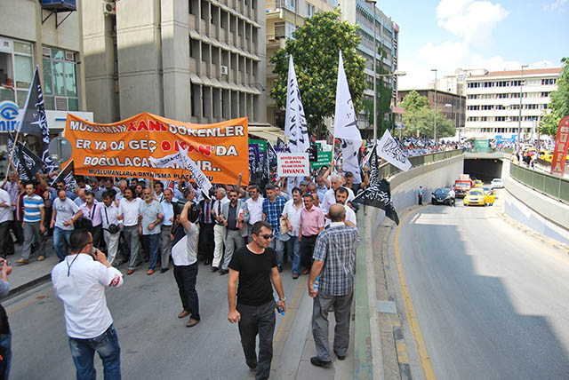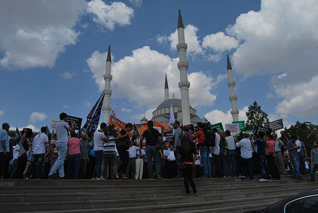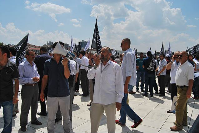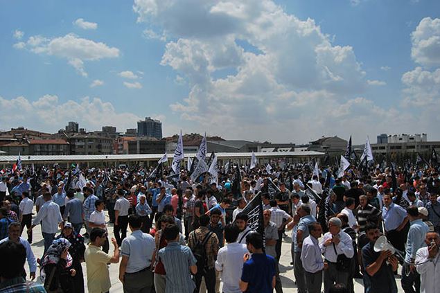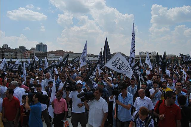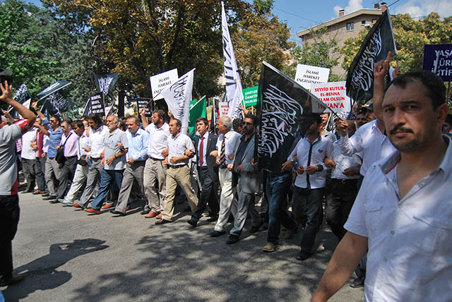 Hizb ut Tahrir/ Wilayah Turkey members and supporters organized a demonstration in Kojataph Mosque in Ankara attended by thousands and covered by the media guaranteed its delivery of press releases to condemn the brutal massacres committed in Egypt towards displaced Muslims calling for the rule of Allah's Shariah throughout the land.